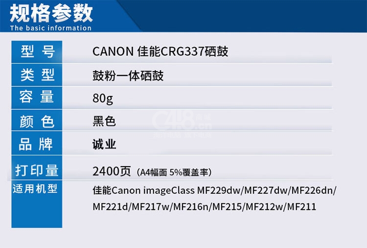 | 適用機(jī)型 | LBP151dw;MF210;MF211;MF212w;MF215;MF216n;MF216nz;MF217w;MF221d;MF222dw;MF223d;MF224dw;MF226dn;MF227dw;MF229dw;MF249dw;MF232w;MF233n;MF236n;MF242dw;MF243d; MF244dw;MF246dn |