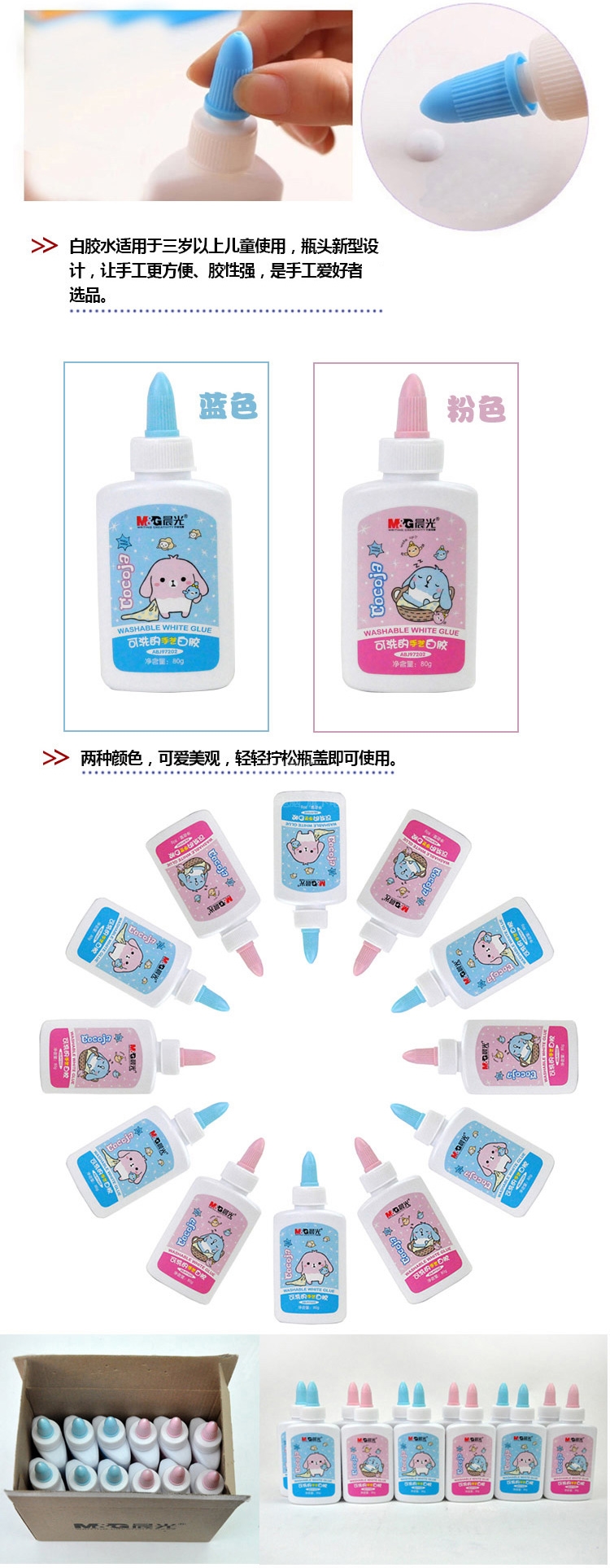 “M&G/晨光”ABJ97202 可洗的手藝白膠 1瓶裝(外殼顏色隨機(jī)可水洗學(xué)生手工乳膠80g快干高粘度液體膠)