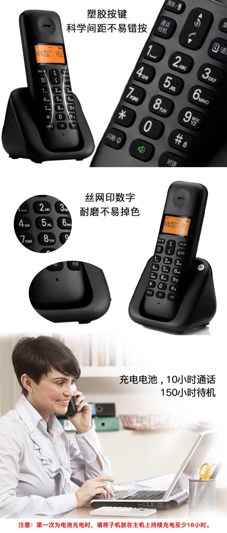 電話機(jī)×1 充電基座×1 電源適配器×1 充電鎳氫電池×2 電話直線×1 說明書×1 保修卡×1