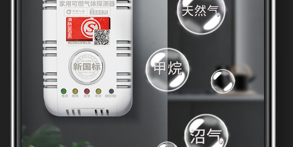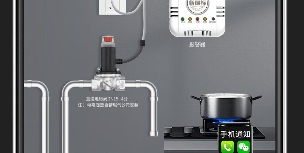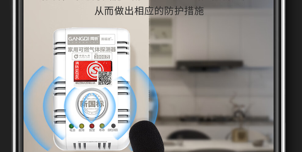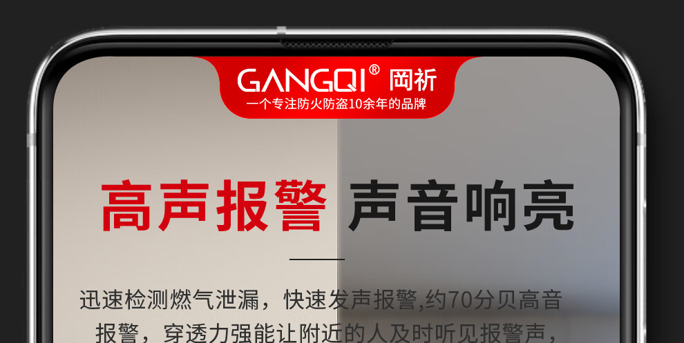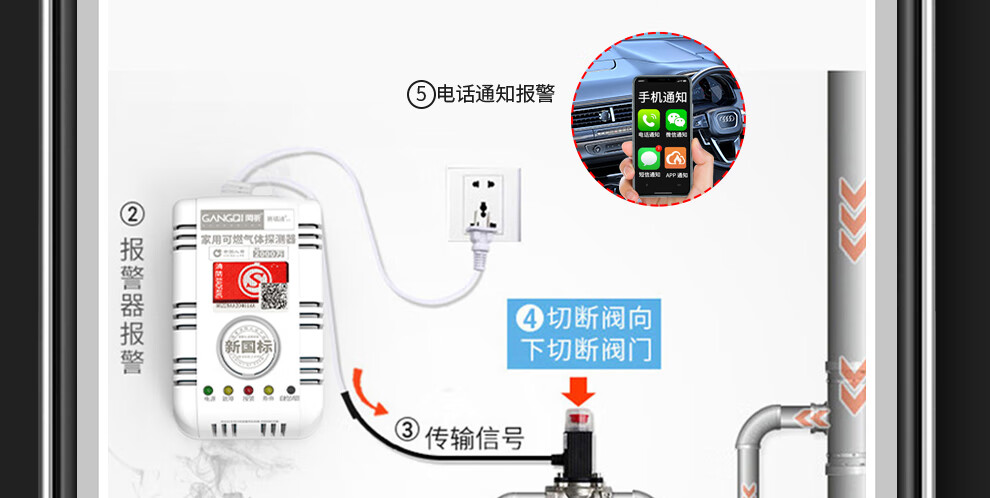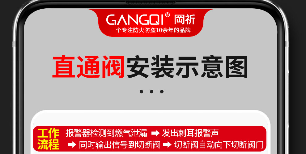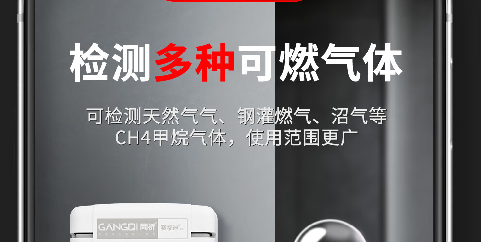 “Gangqi/岡祈”YJ-607 可燃氣體探測器 單臺裝(泄露自動切斷聯(lián)動電磁閥商用探測甲烷液化天然氣煤氣燃氣報警器)