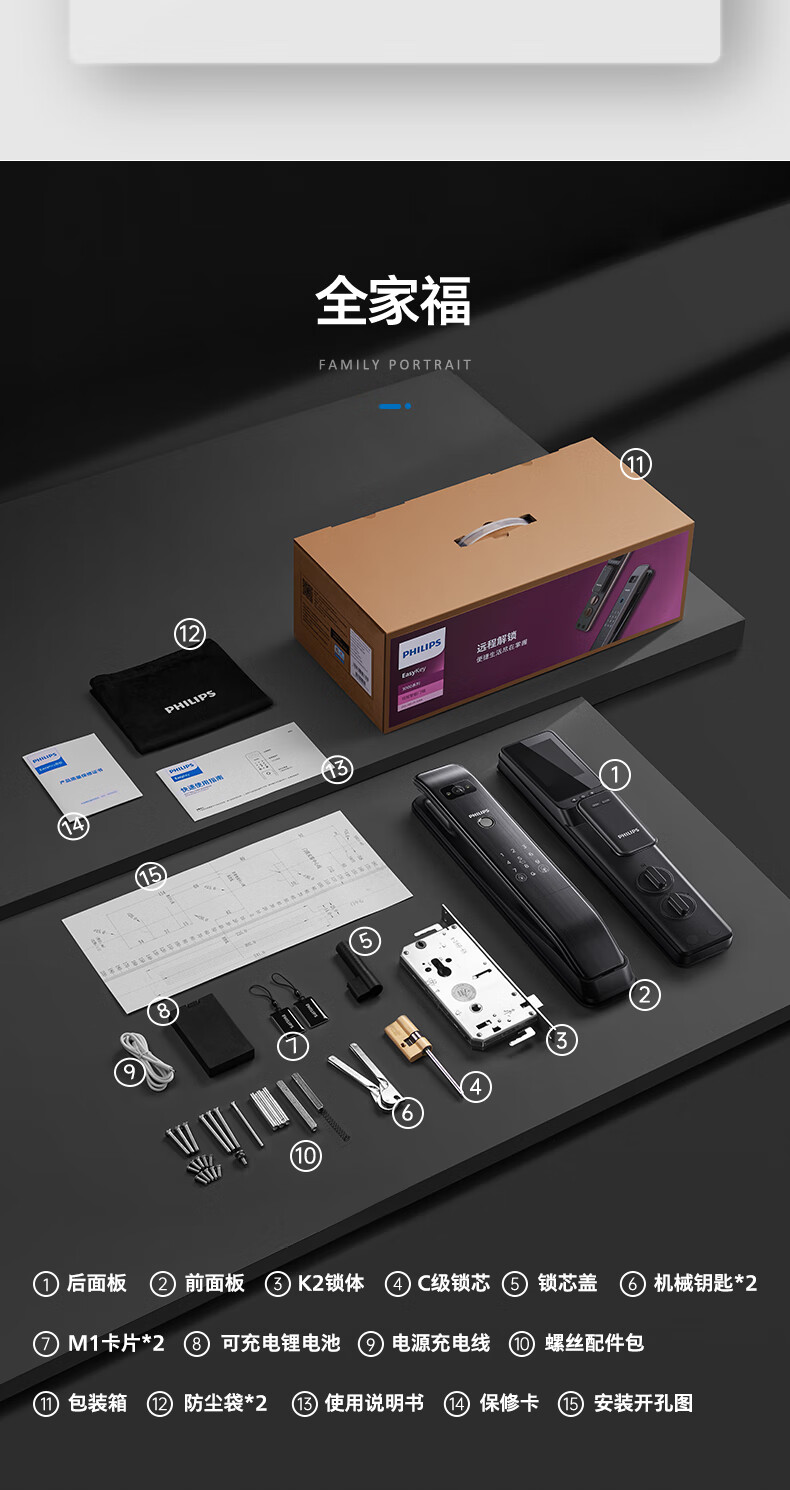 鎖主體1把配件包1套鑰匙包1套說明書1套包裝盒1個(gè)