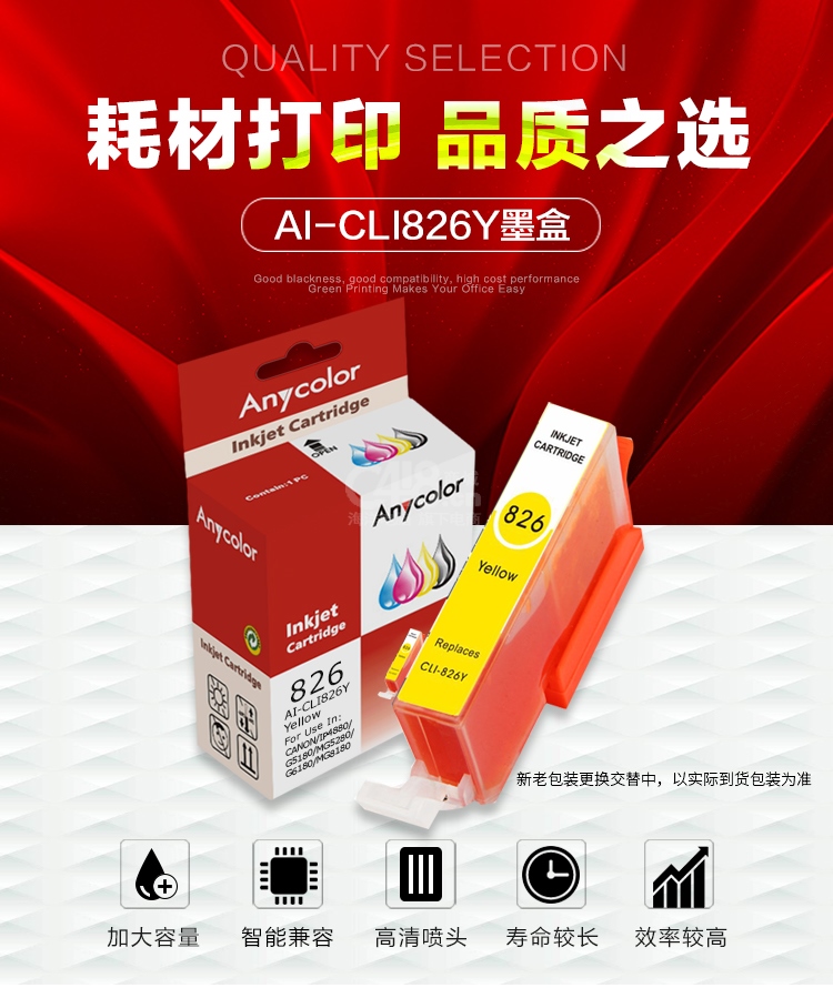 “Anycolor/欣彩”CLI-826Y 墨盒 單個裝(黃色AI-CLI826Y適用佳能IX6580 IP4980 IP4880 G5180 MG8180 MG6280 MX898打印機(jī))