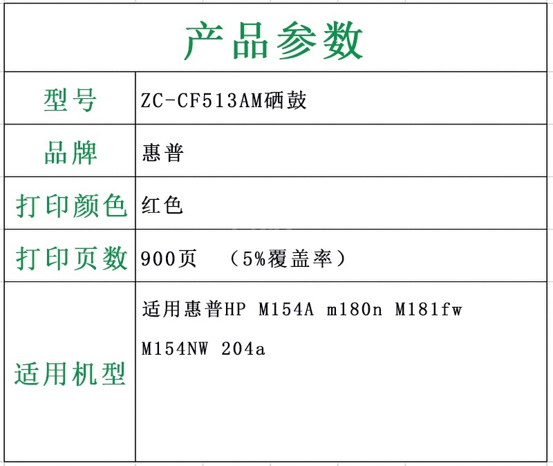“ZHI YUN HUI CAI/智云匯彩”CF513A 環(huán)保激光打印機(jī)硒鼓 單支裝(紅色適用惠普HP M154A m180n M181fw M154NW 204a ZC-CF513AM)