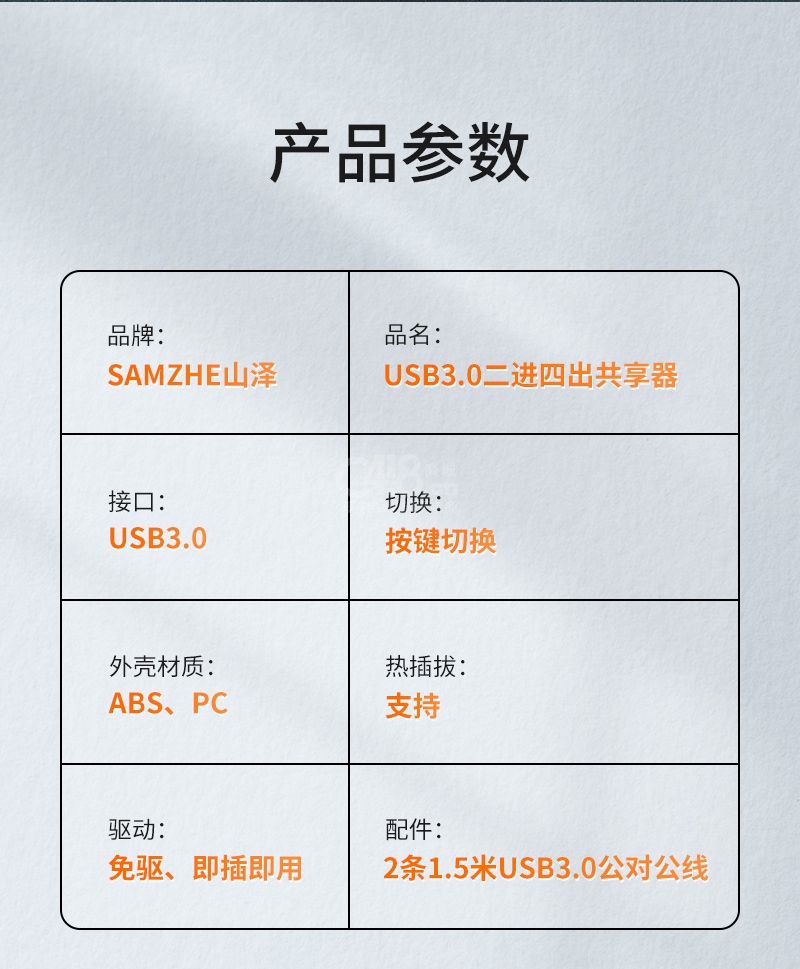 USB3.0二進(jìn)四出共享器 *1、USB線 *2;