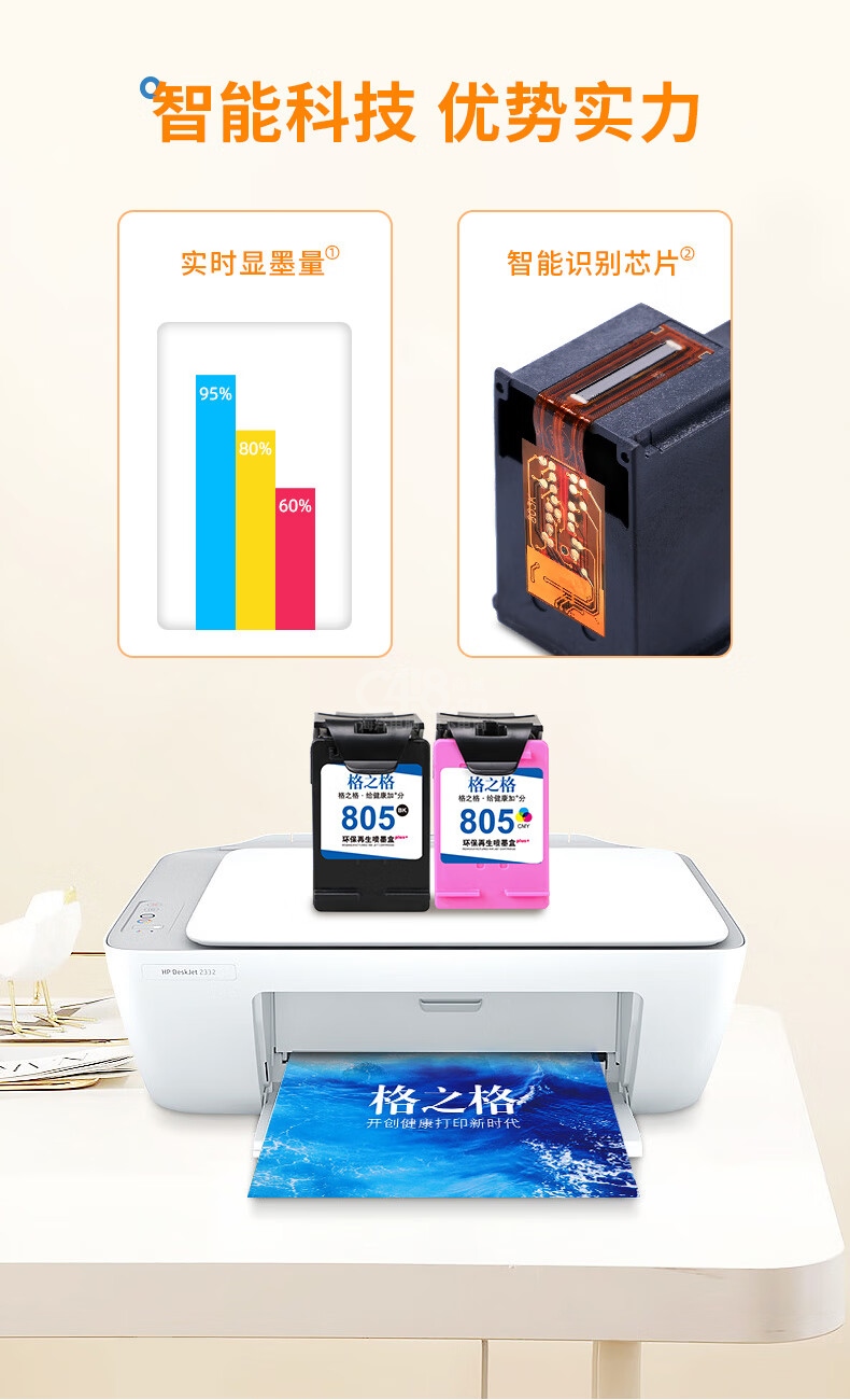 “G&G/格之格”805XL 環(huán)保再生噴墨盒 單個(gè)裝(彩色NH-R00805XLCMY適用惠普hp2720 2332 1210 2722 1212 2729 2721打印機(jī)可加墨水)
