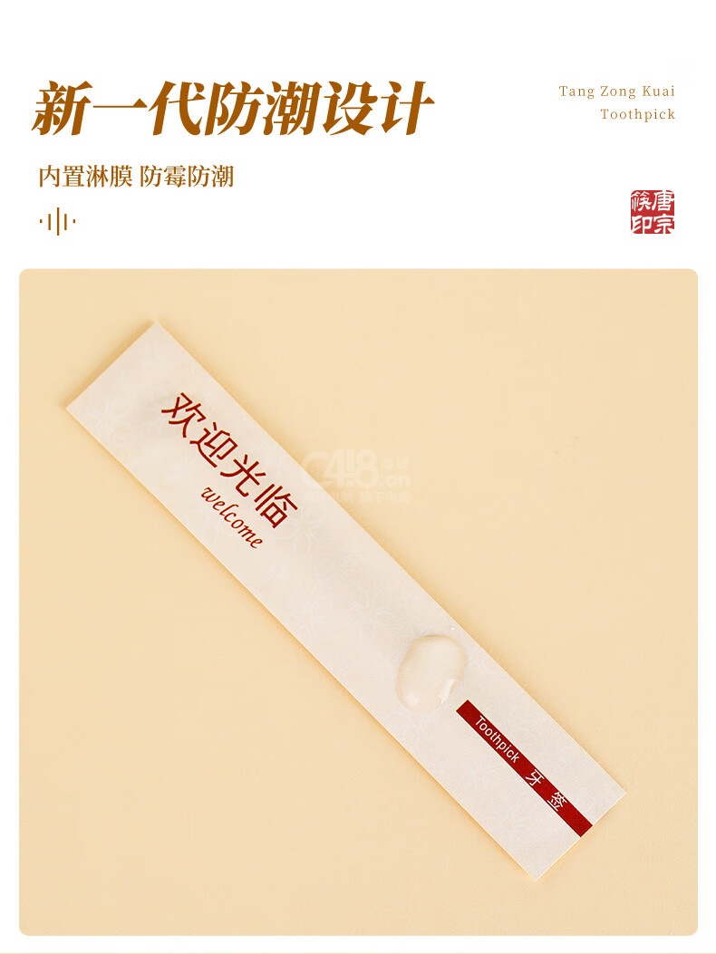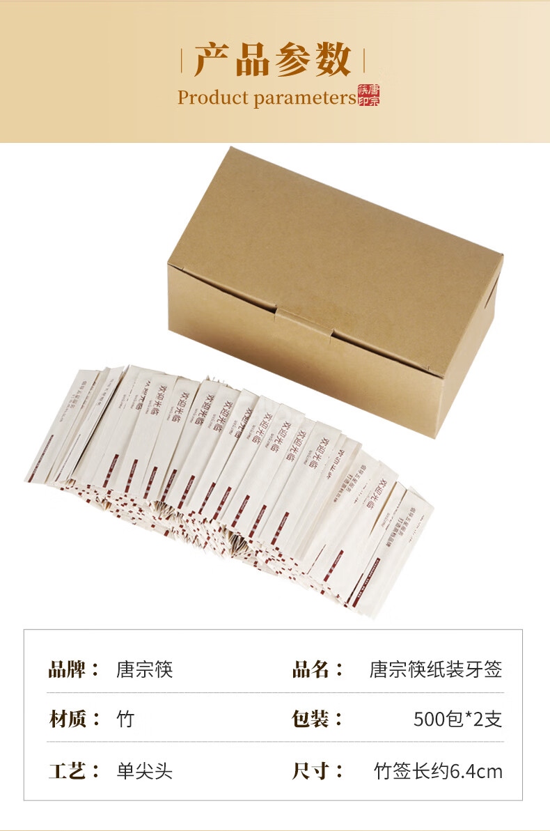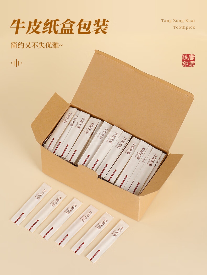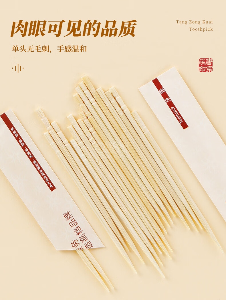 “TANG CHOPSTICKS/唐宗筷”C2238 牙簽 單包裝(一次性獨(dú)立包裝便攜式酒店用商用高檔紙包1000支/包)