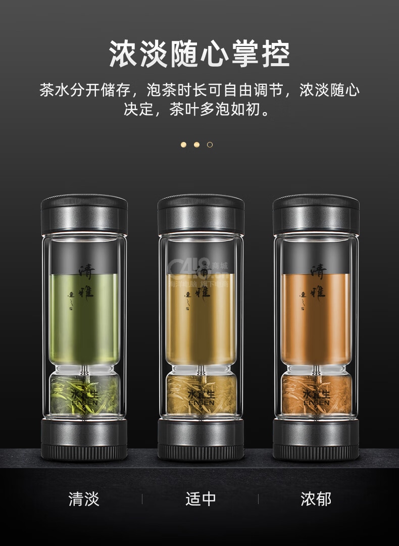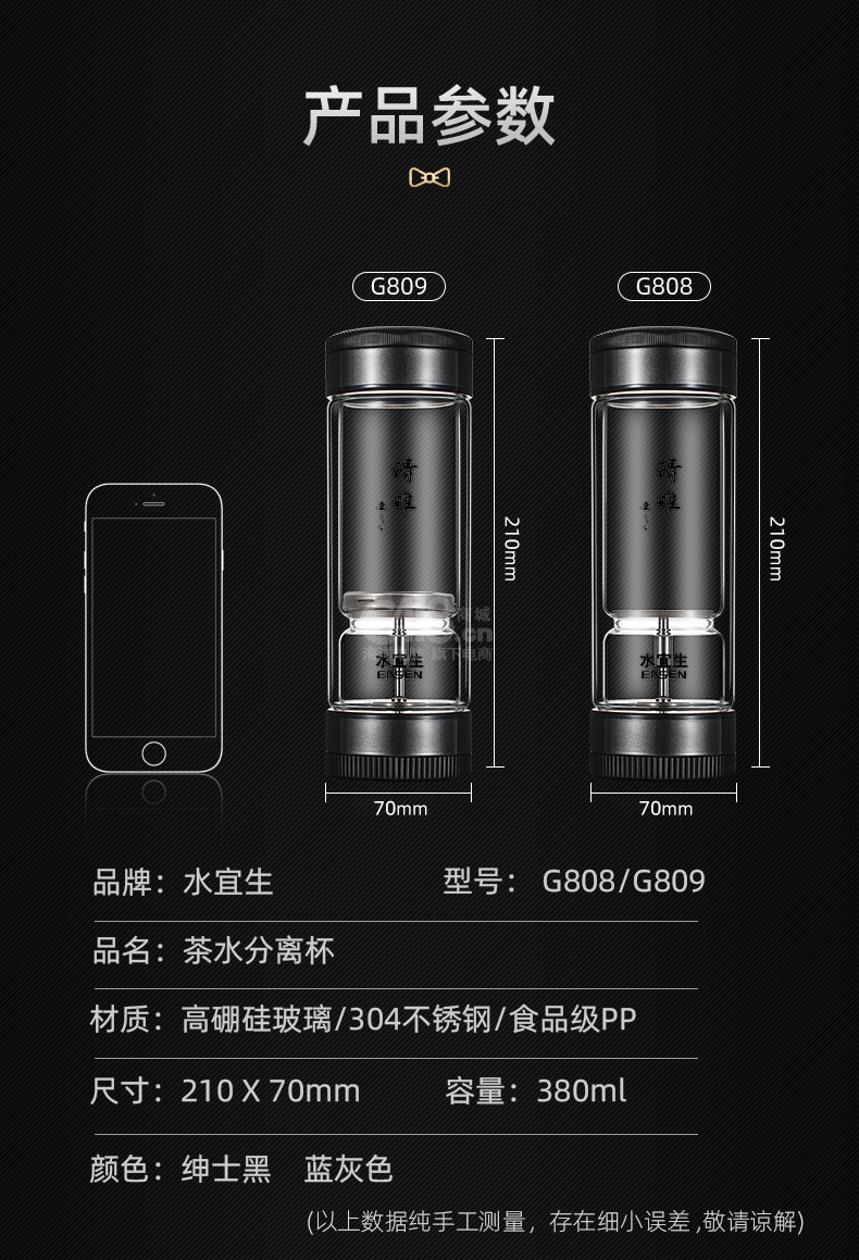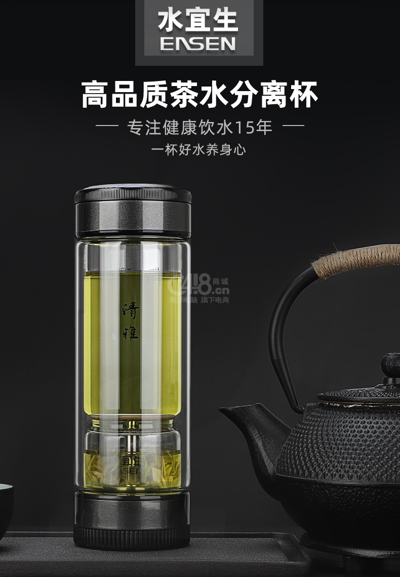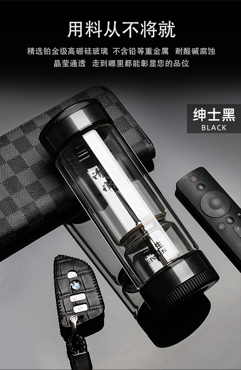 “EASEN/水宜生”鈦晶弱堿版 380ml 茶杯 1個(gè)裝(紳士黑茶水分離杯玻璃杯雙層泡茶杯高檔男士水杯子商務(wù)杯車載杯防燙)