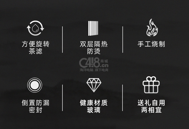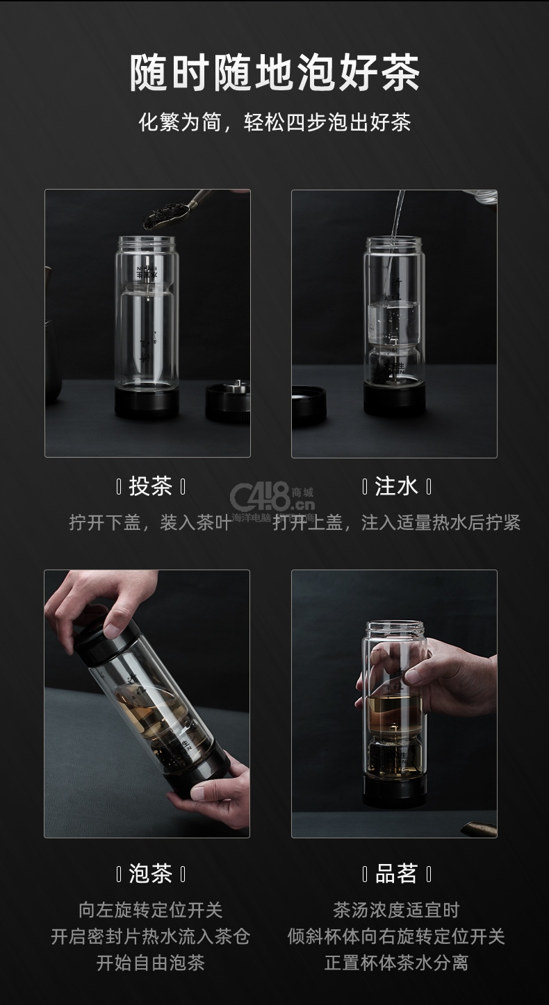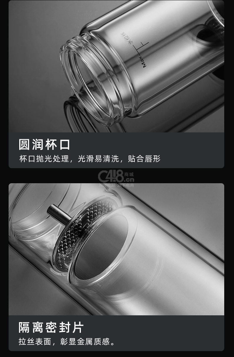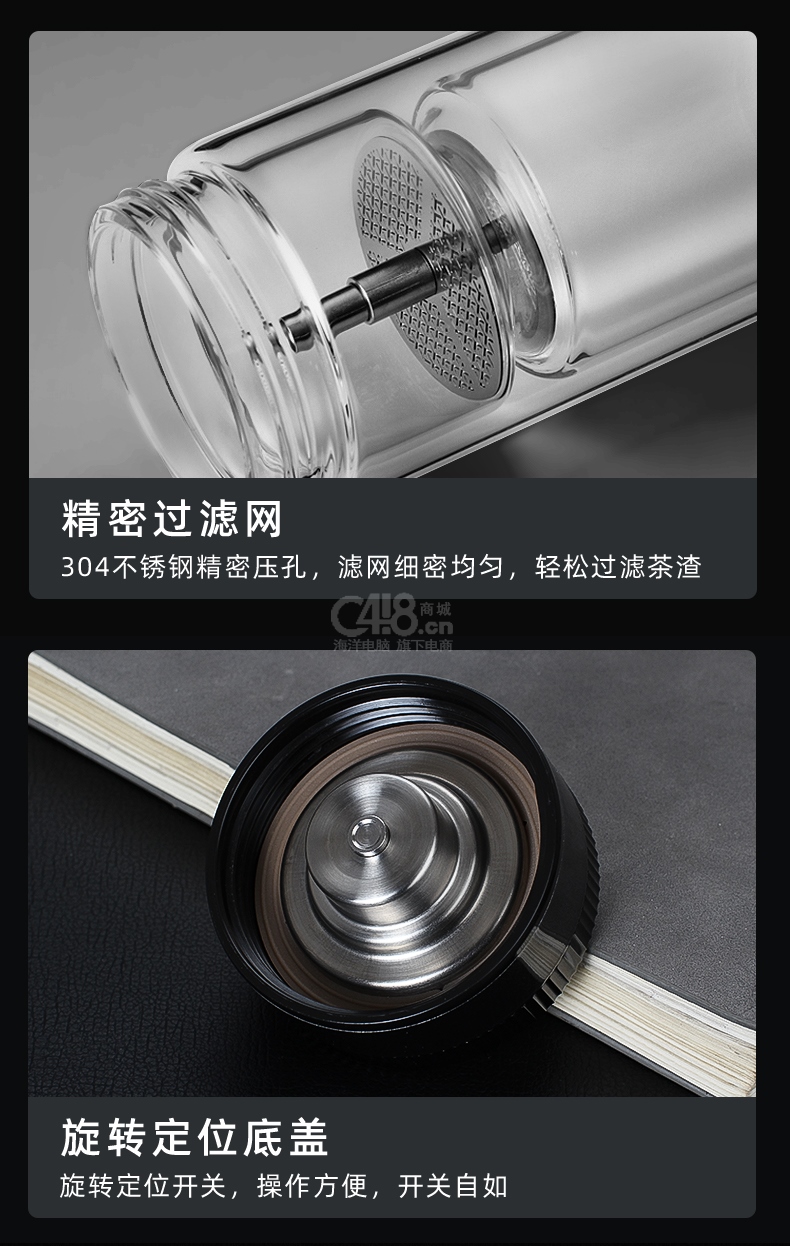 “EASEN/水宜生”鈦晶弱堿版 380ml 茶杯 1個(gè)裝(紳士黑茶水分離杯玻璃杯雙層泡茶杯高檔男士水杯子商務(wù)杯車載杯防燙)