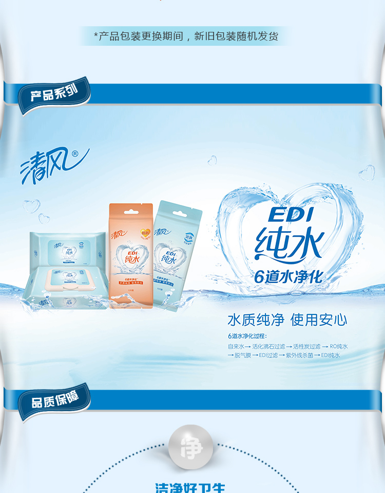 清風(fēng)EDI純水濕巾80片裝*1