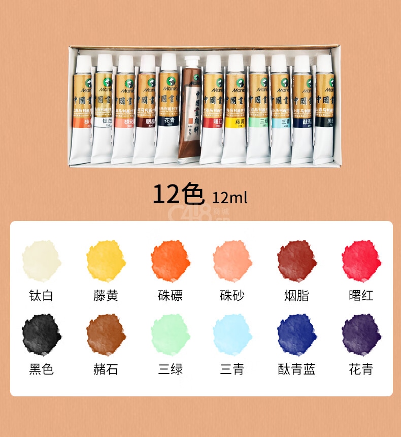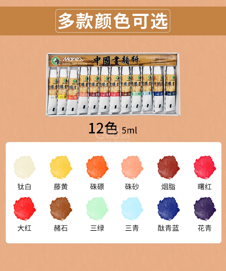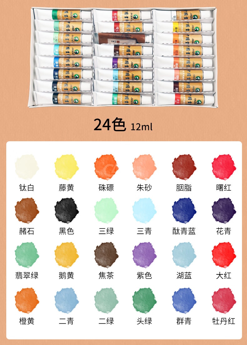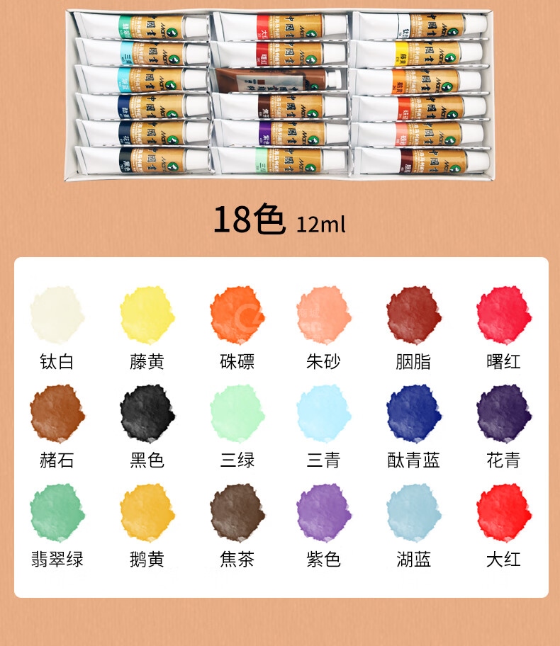 包裝盒*1單支國畫顏料*12(12色)