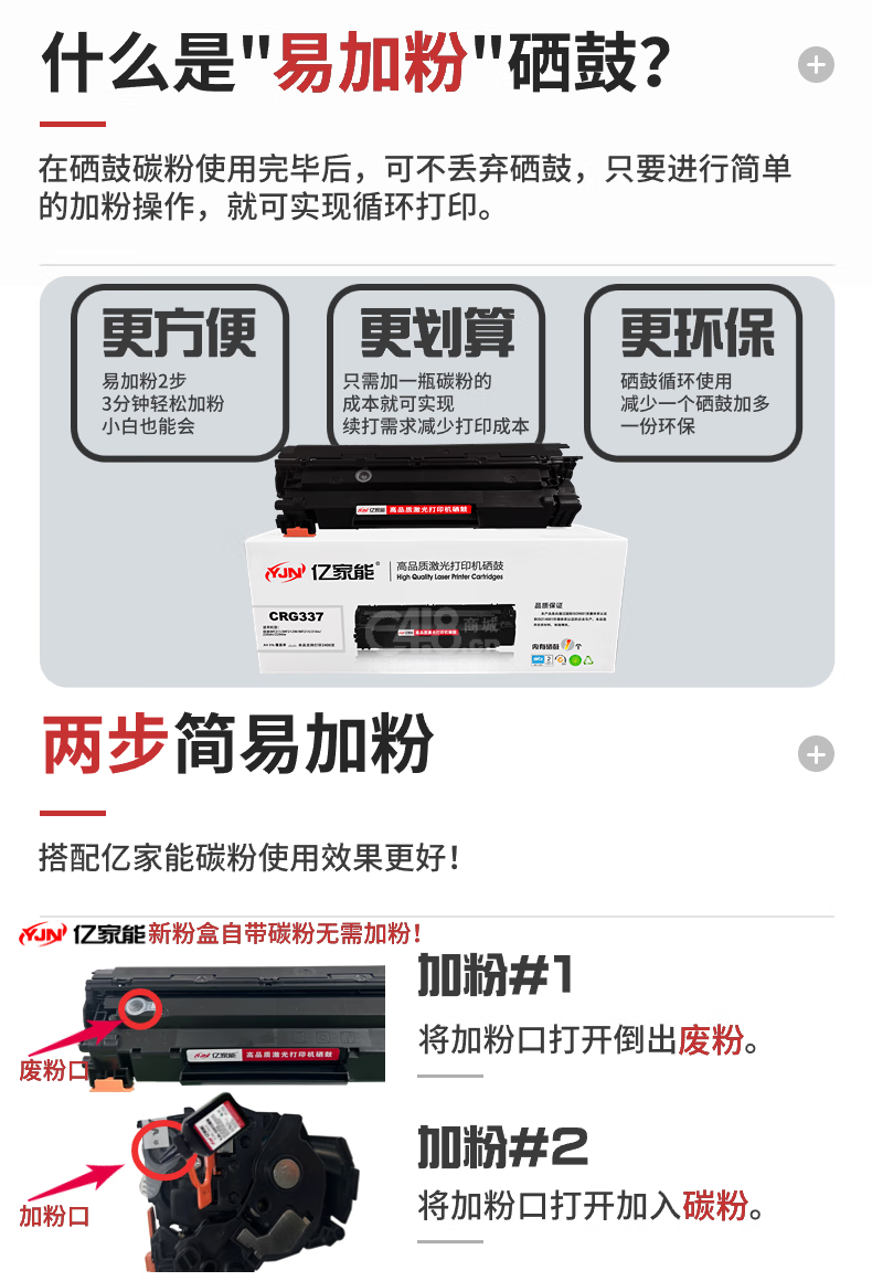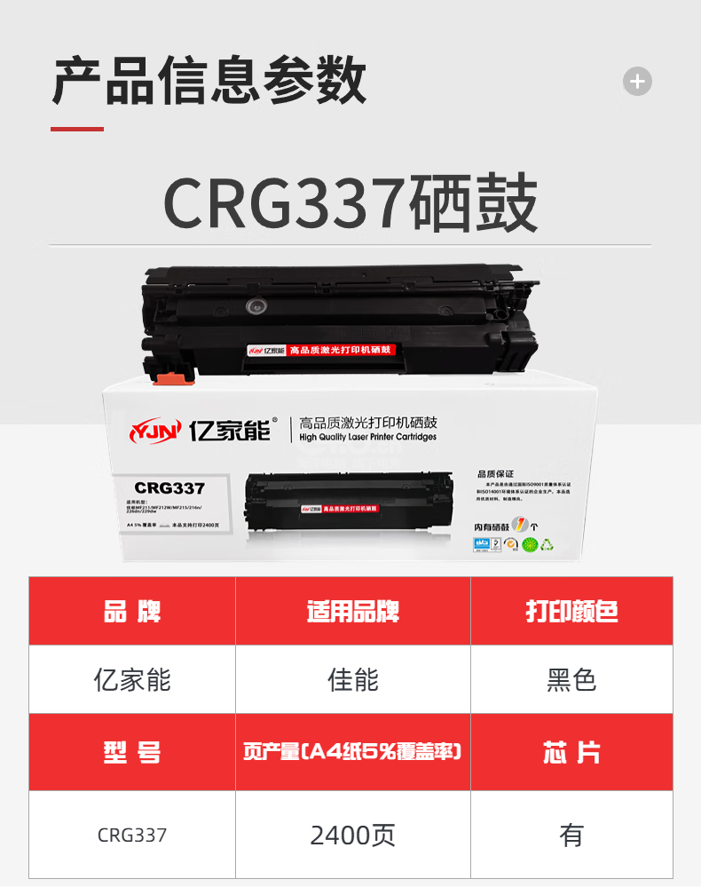 “YJN/億家能”CRG337 高品質(zhì)激光打印機(jī)硒鼓 單個(gè)裝(黑色適用佳能MF249dw/MF246dn/243d易加粉2400頁)