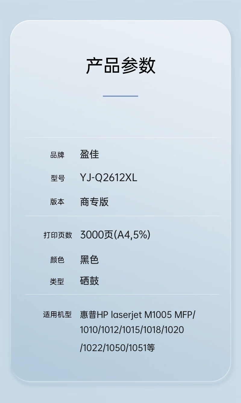 “YJ/盈佳”12XL Q2612XL 環(huán)保型激光碳粉盒 單個(gè)裝(黑色YJ-Q2612XL 3000頁(yè)適用于惠普M1005硒鼓)