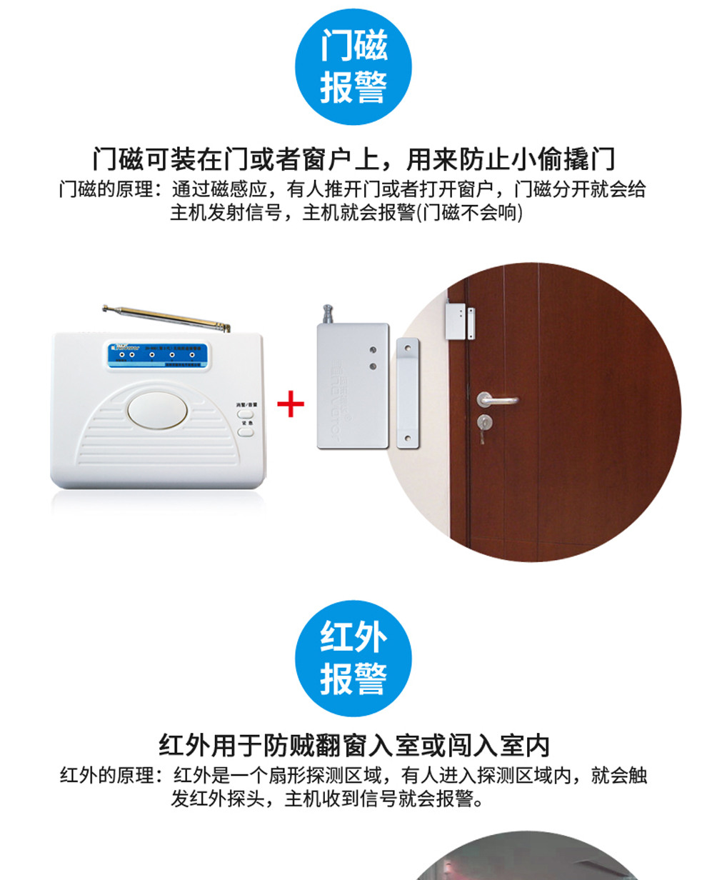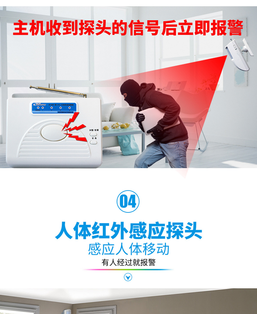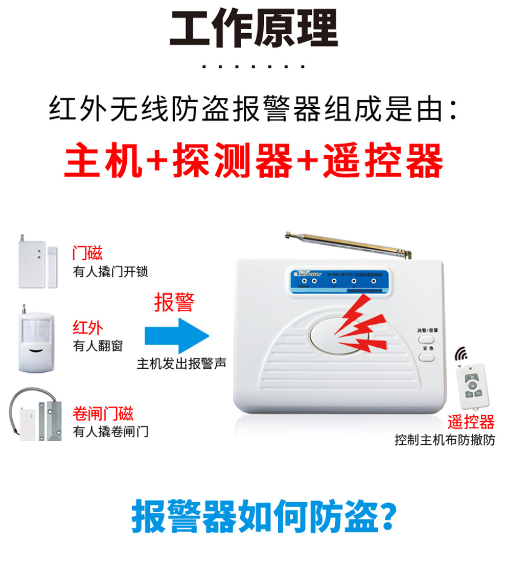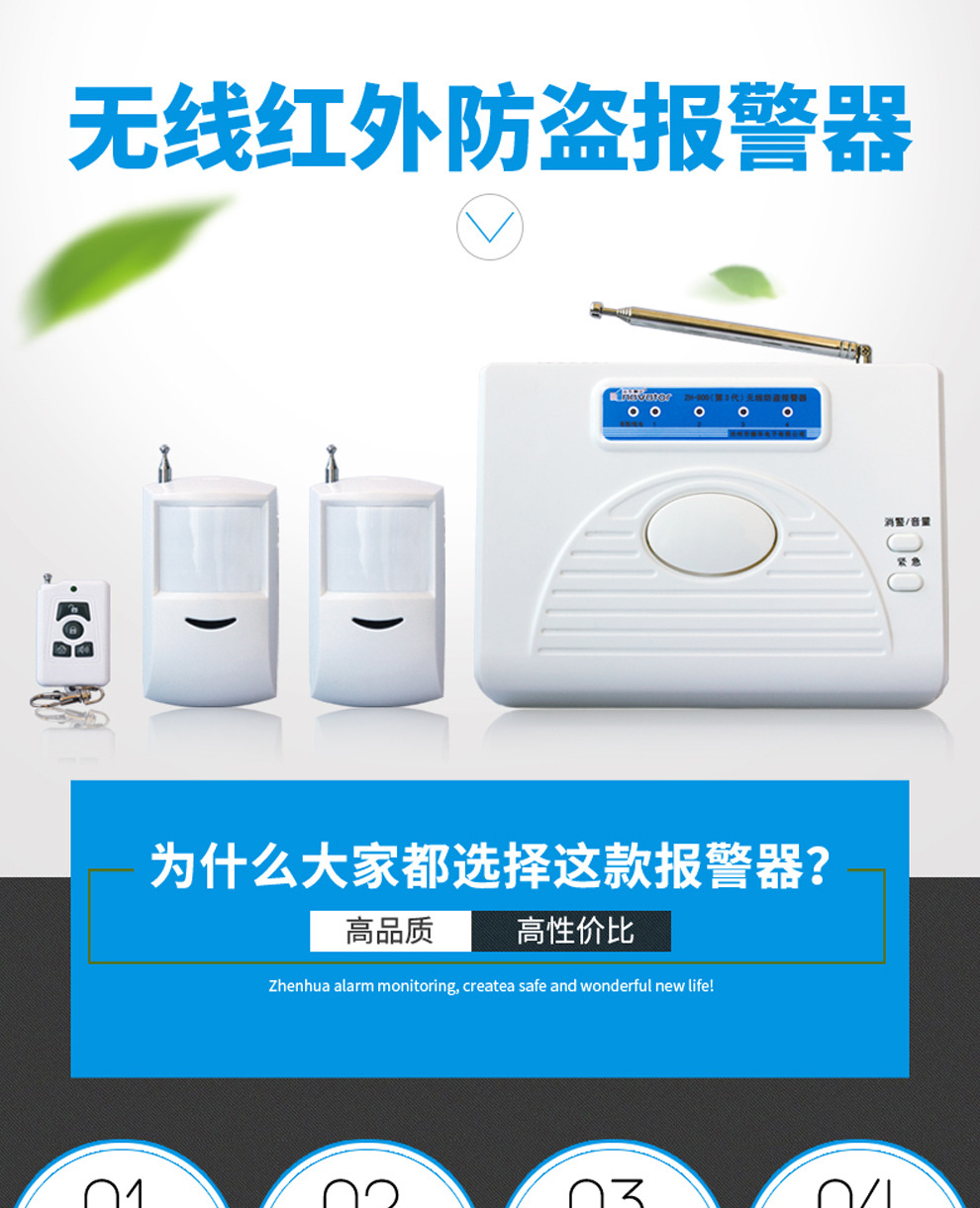 “navator/運東振華”ZH-900(第3代) 無線防盜報警器 單套裝(紅外線家庭用店鋪報警器門窗車庫遠距離防盜安防1主機+1探頭+2遙控+1門磁)