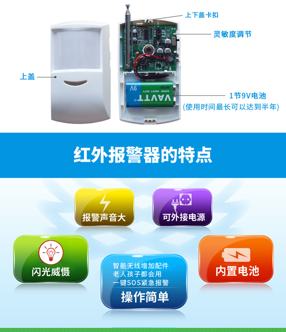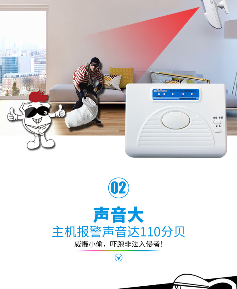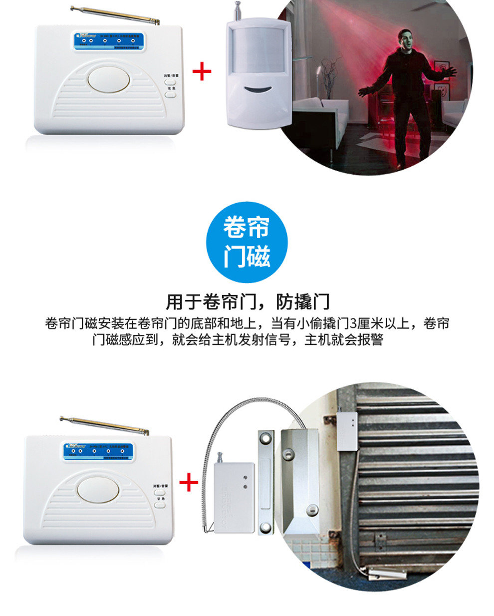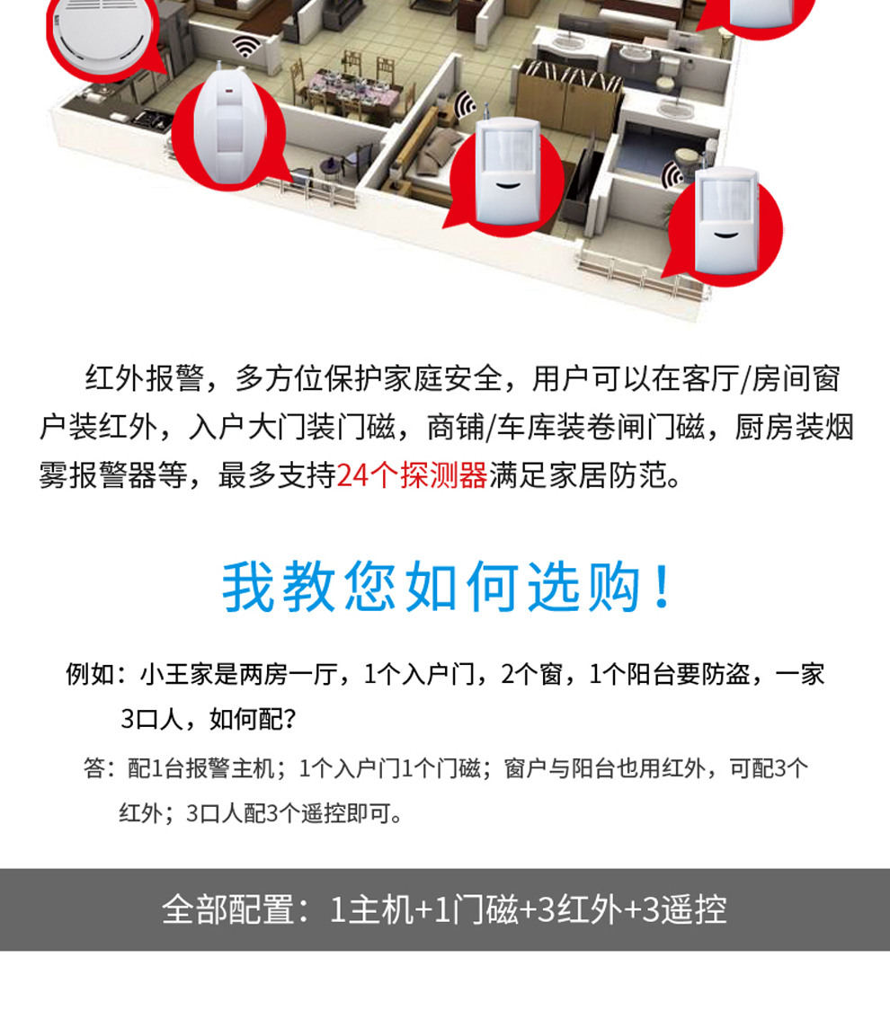 “navator/運東振華”ZH-900(第3代) 無線防盜報警器 單套裝(紅外線家庭用店鋪報警器門窗車庫遠距離防盜安防1主機+1探頭+2遙控+1門磁)