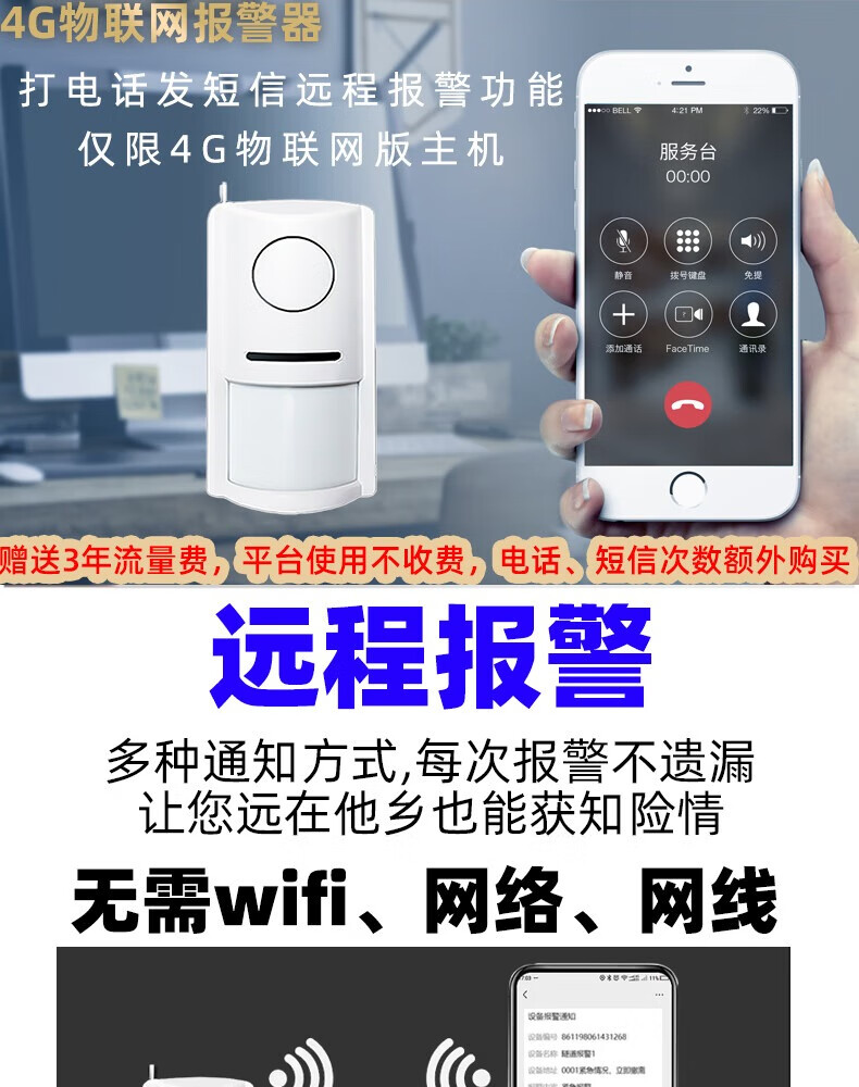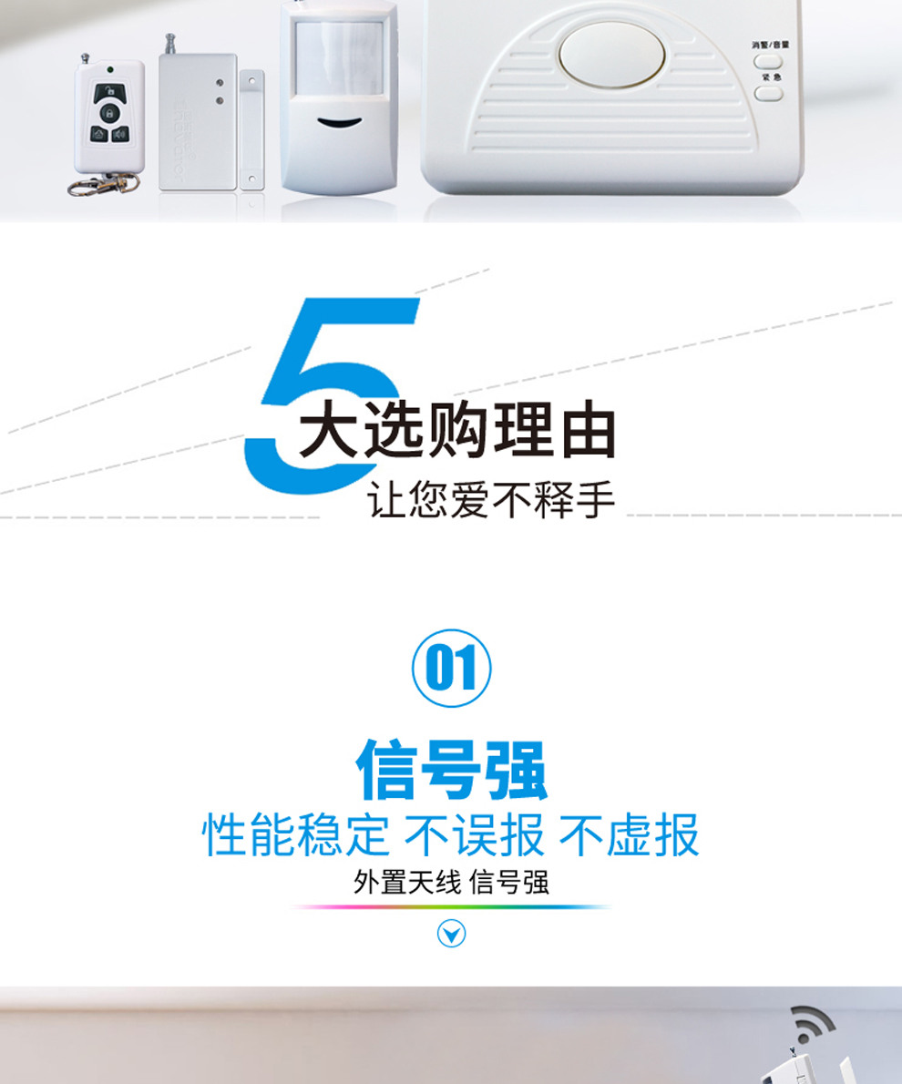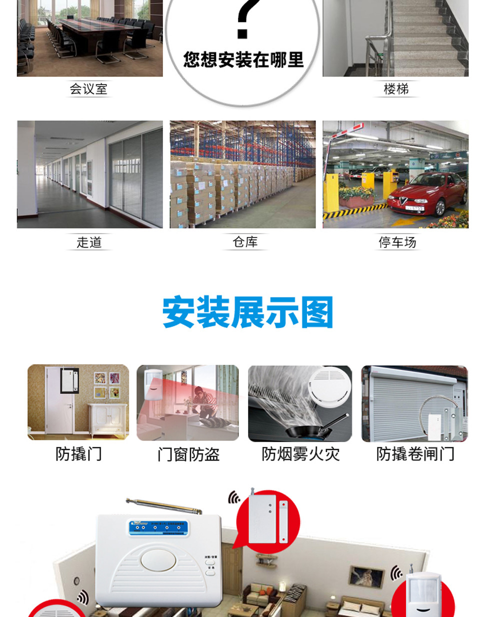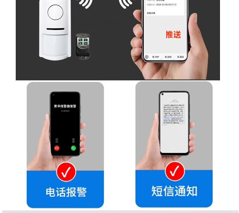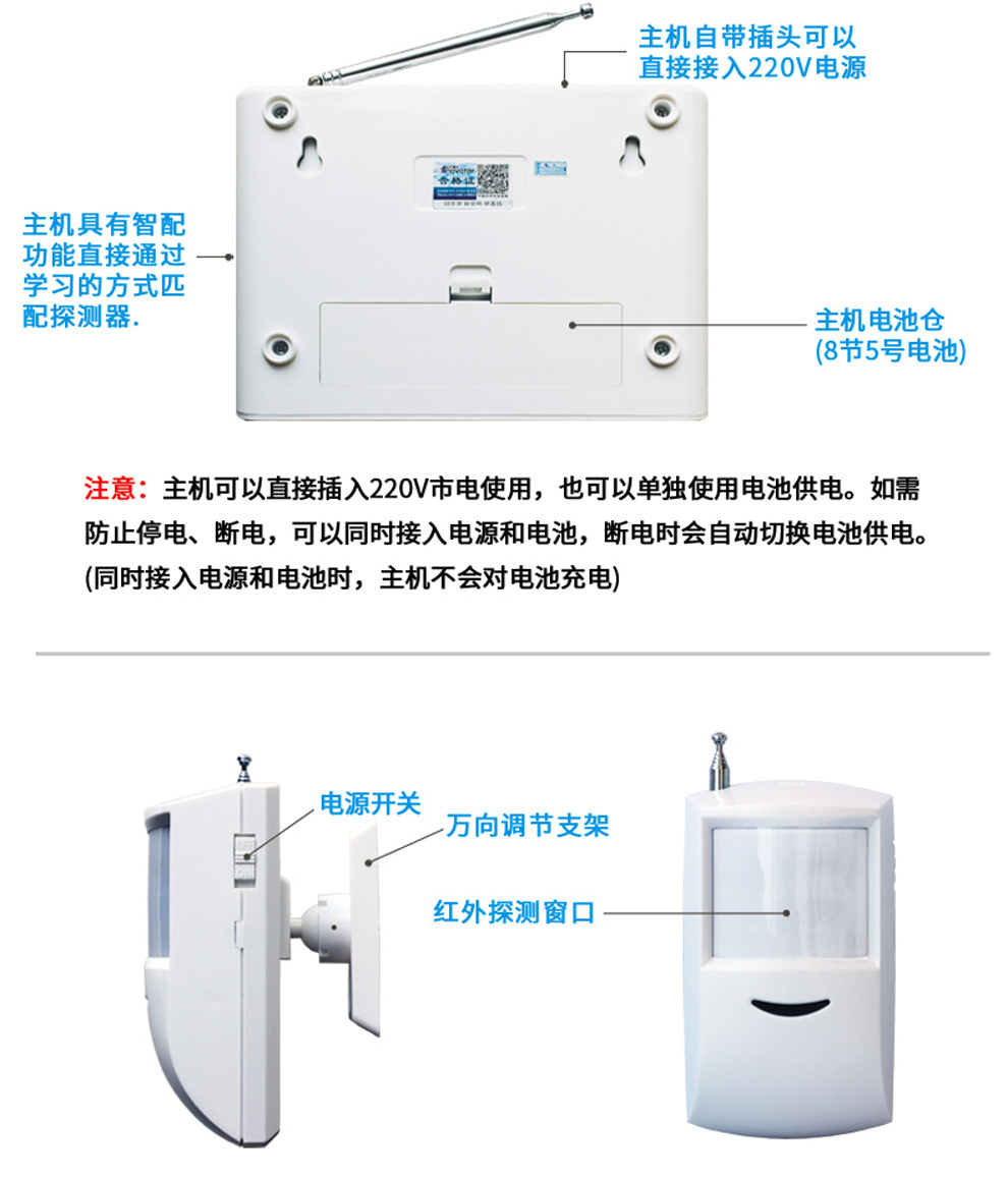 “navator/運東振華”ZH-900(第3代) 無線防盜報警器 單套裝(紅外線家庭用店鋪報警器門窗車庫遠距離防盜安防1主機+1探頭+2遙控+1門磁)