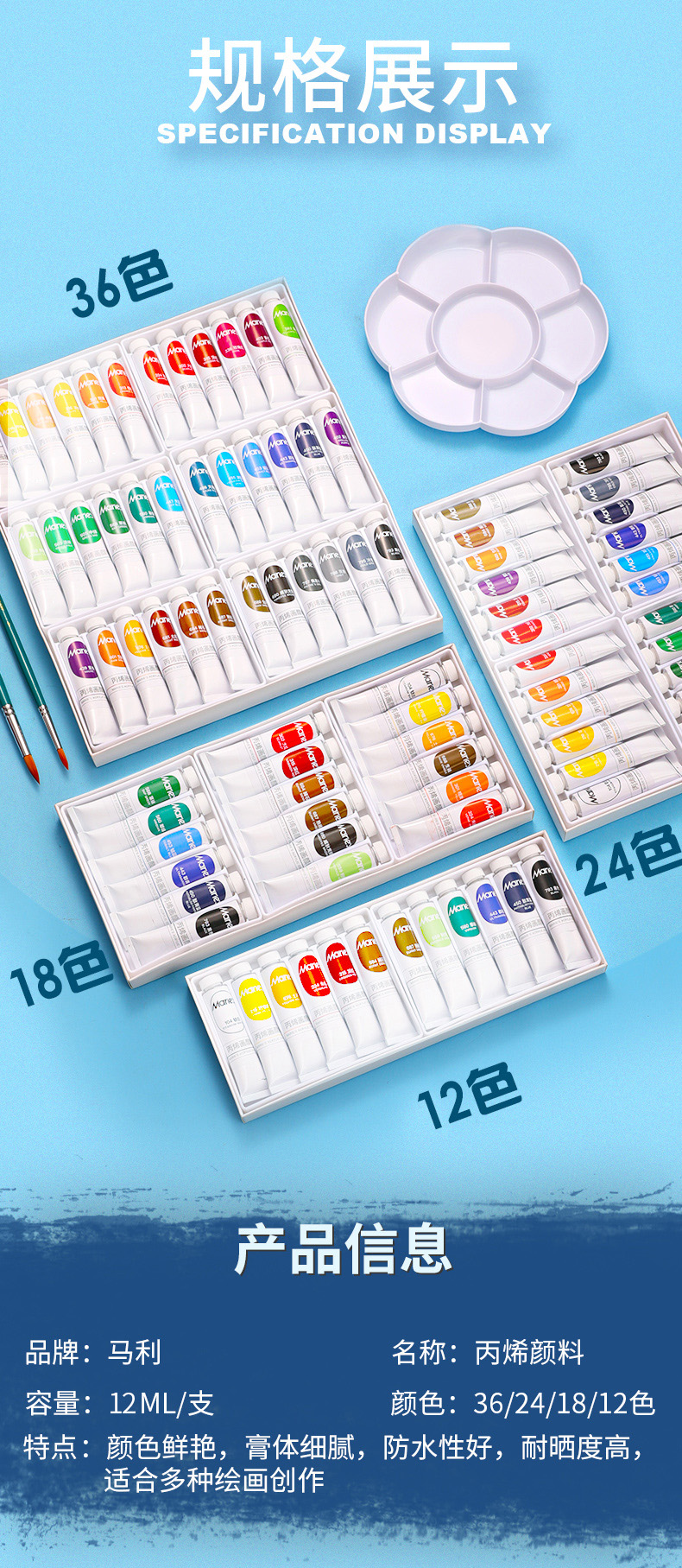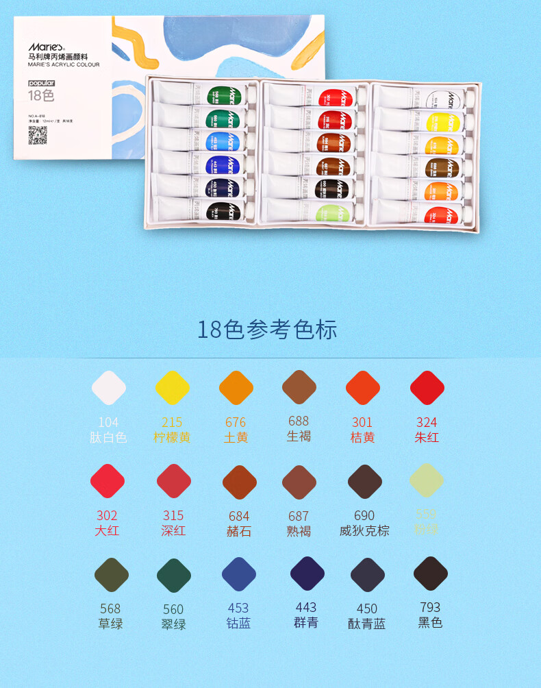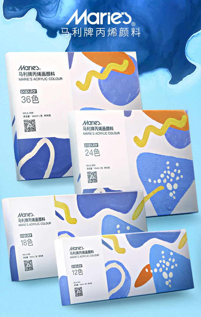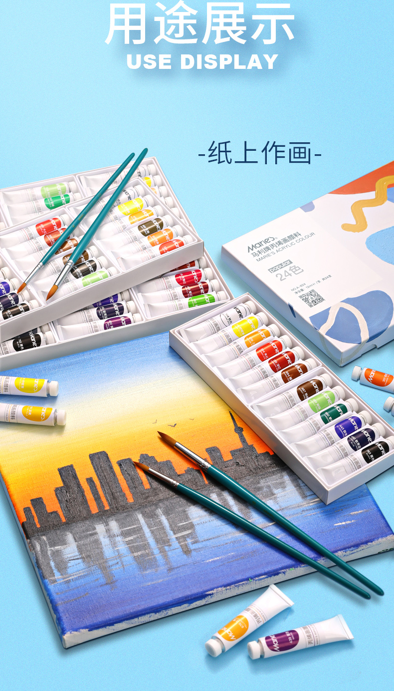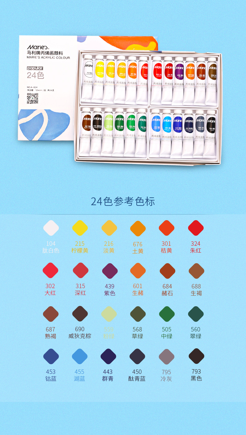 “Marie’s/馬利”A-824 丙烯畫顏料 單盒裝(24色12ml墻繪手繪彩繪飾品學生防水不掉色美術寫生)