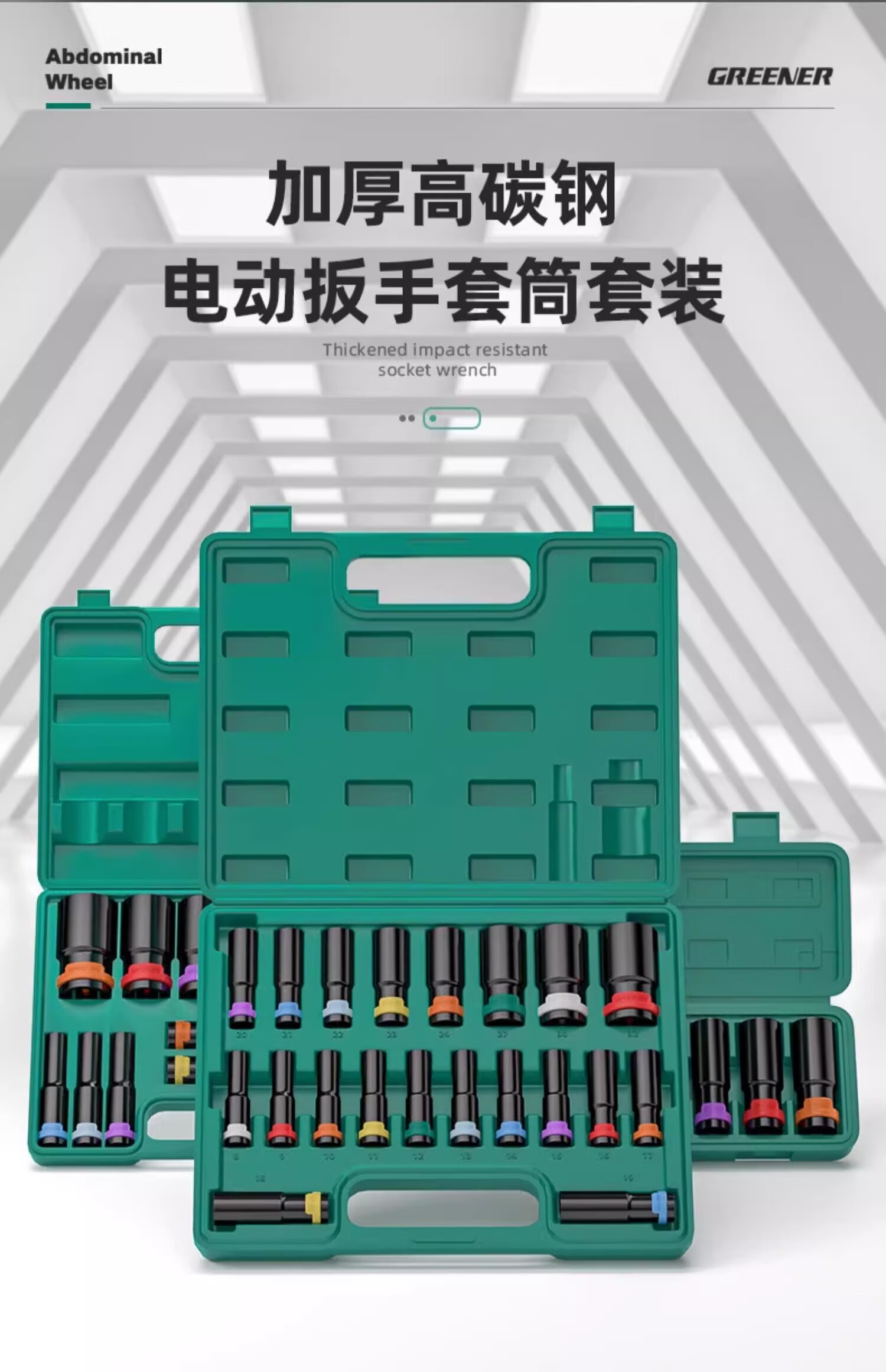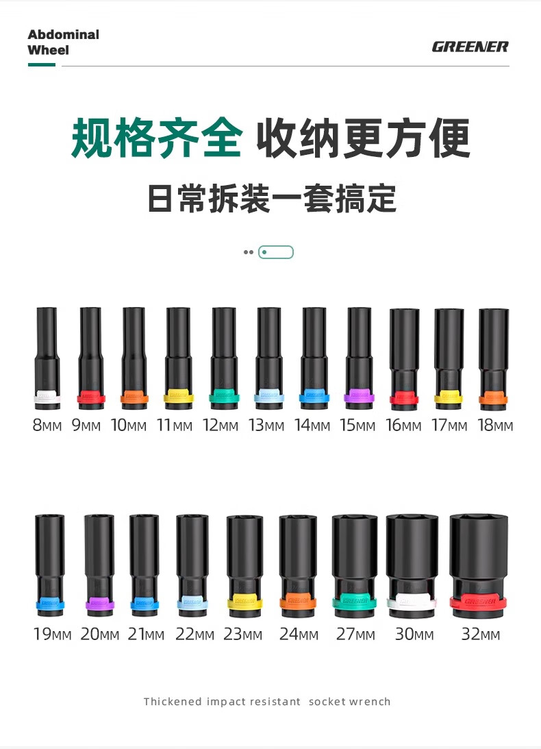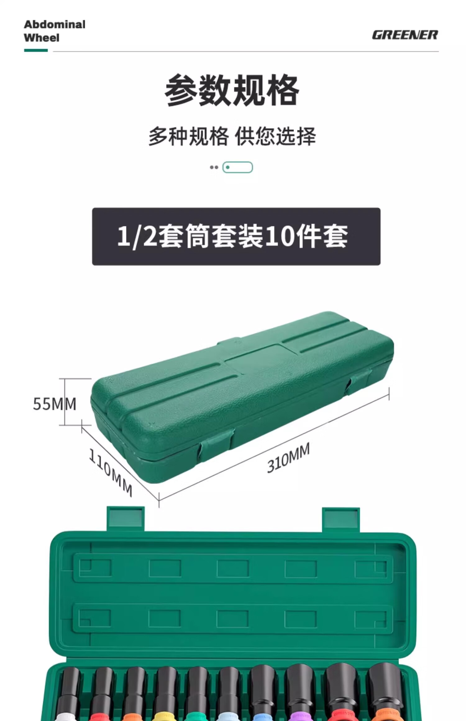 “GREENER/綠林”091027n 電動(dòng)扳手套筒套裝 單套裝(六角加長(zhǎng)風(fēng)炮套筒頭套頭家用10件8-24mm套筒全套)