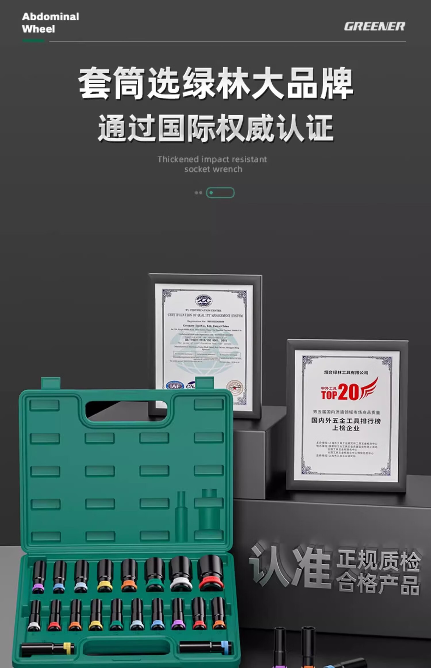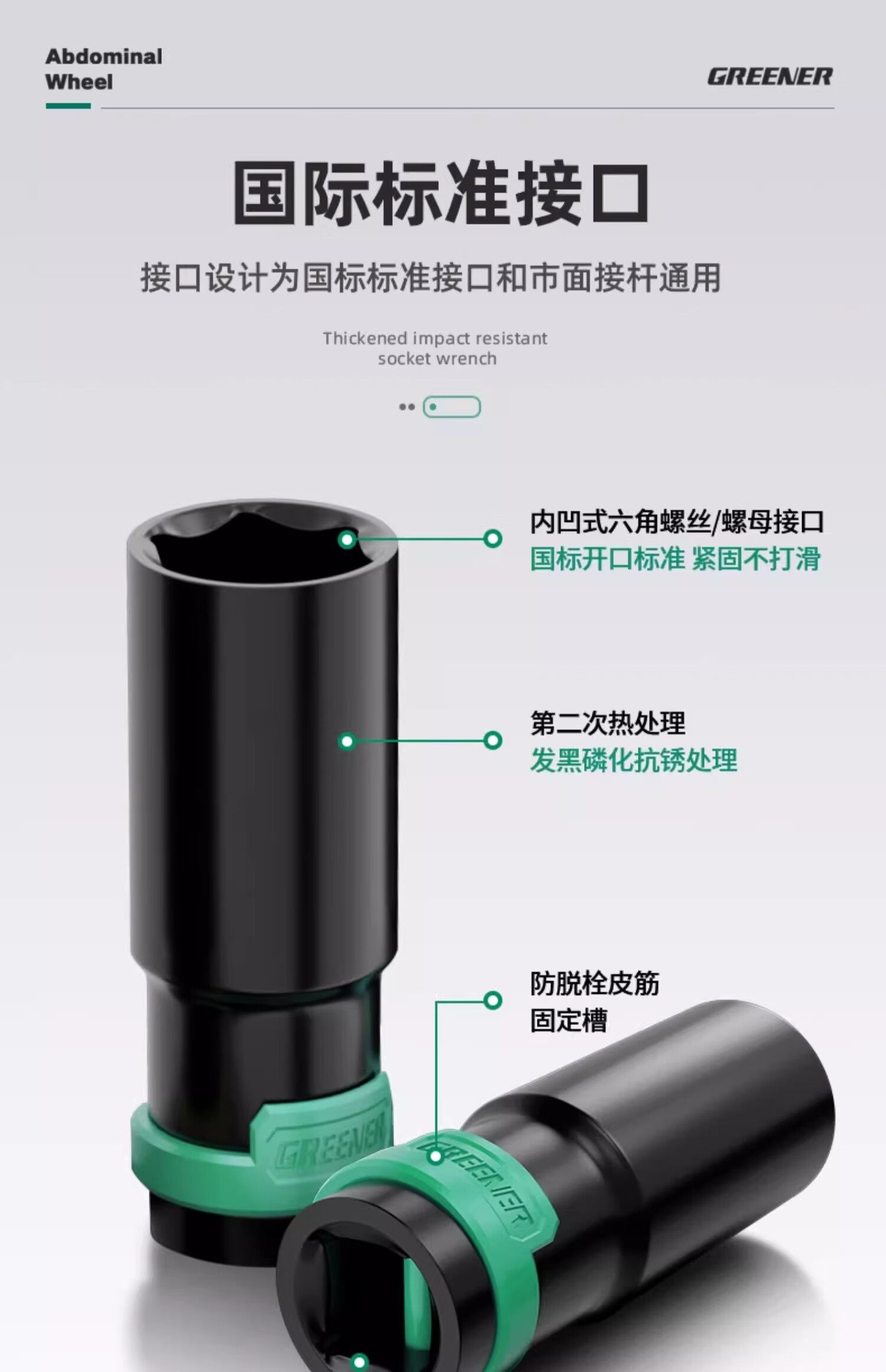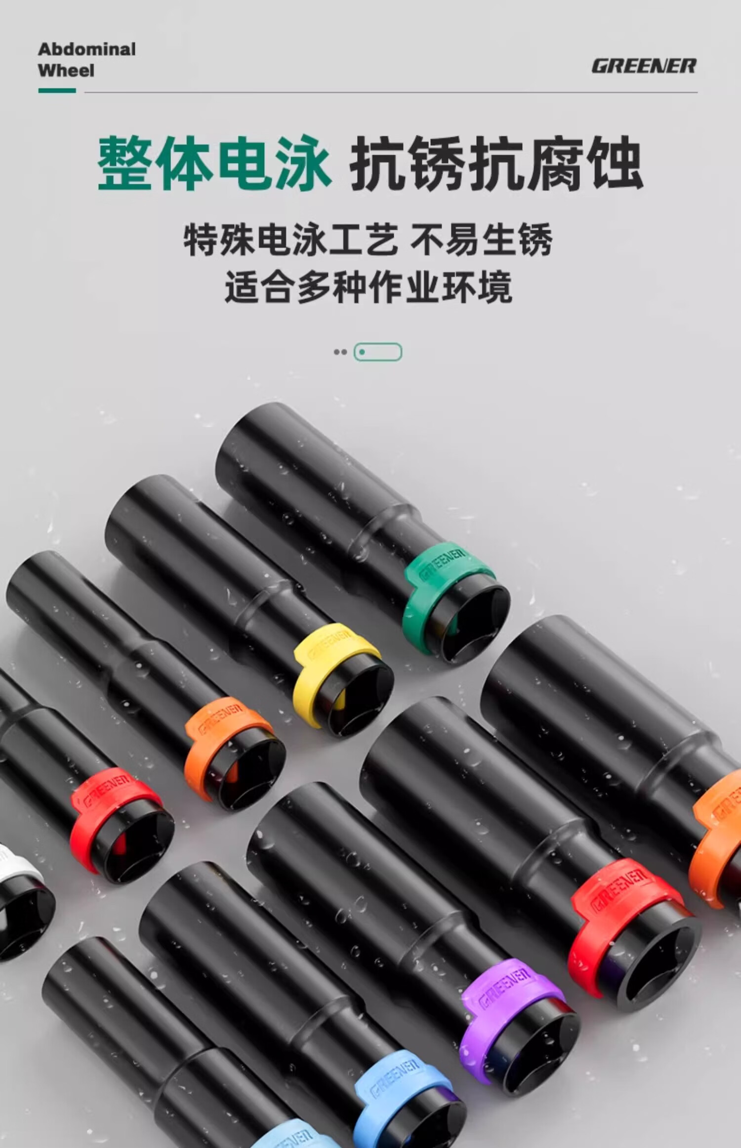 “GREENER/綠林”091027n 電動(dòng)扳手套筒套裝 單套裝(六角加長(zhǎng)風(fēng)炮套筒頭套頭家用10件8-24mm套筒全套)