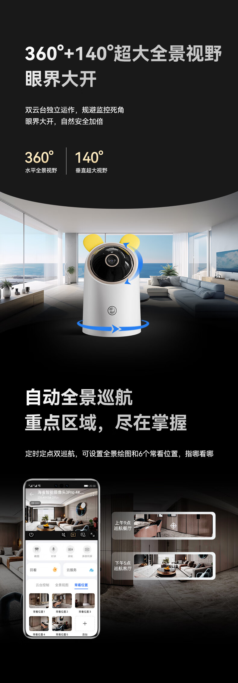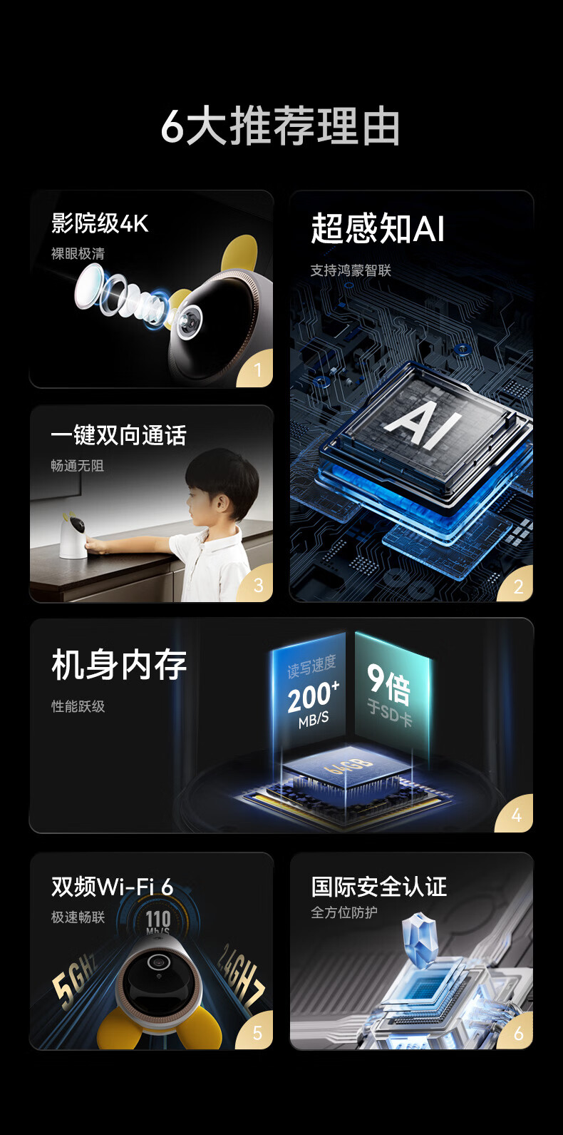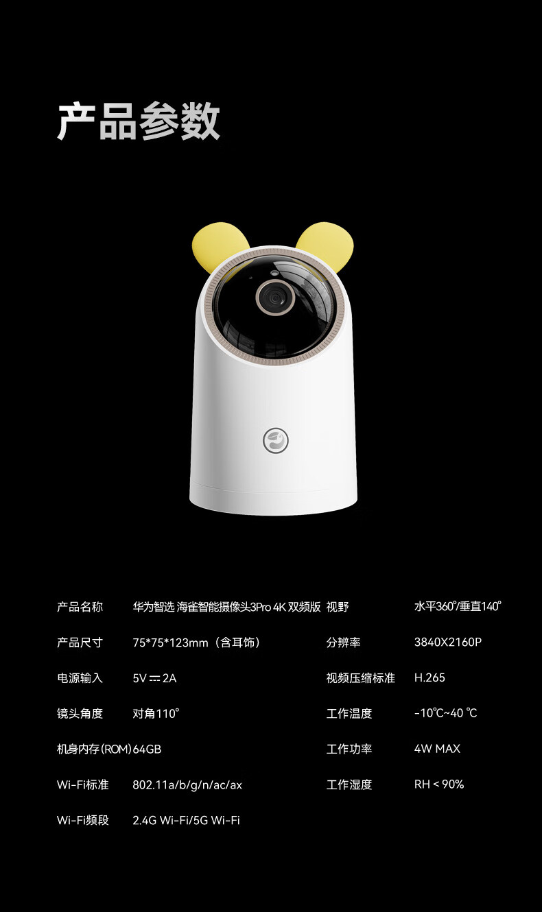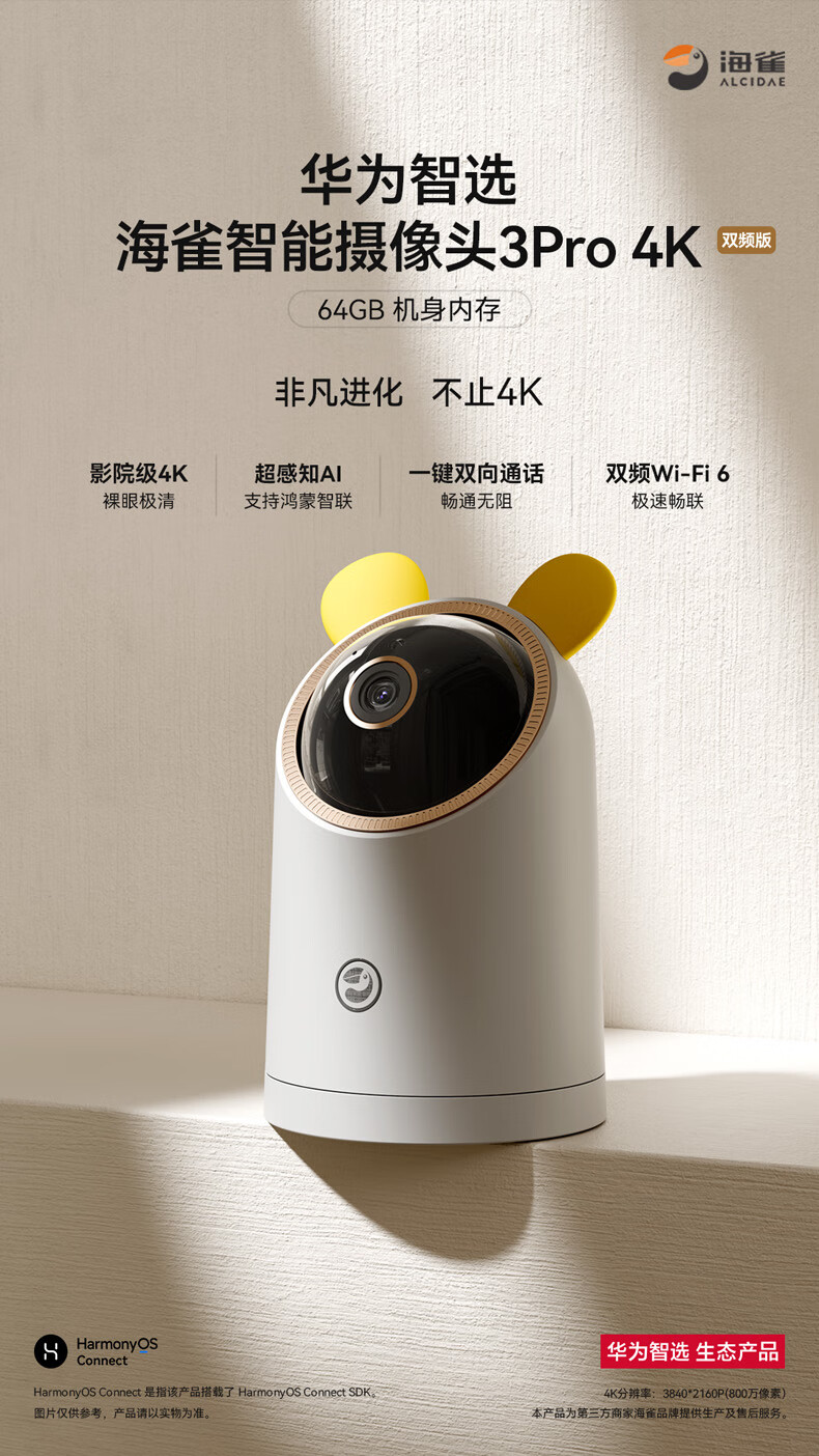 “HUAWEI Hilink/華為智選”3Pro 4K雙頻版 攝像頭 單個裝(海雀800萬監(jiān)控家用手機遠(yuǎn)程360度無死角帶夜視室內(nèi)庭院安防無線嬰兒寵物看護(hù)機器)