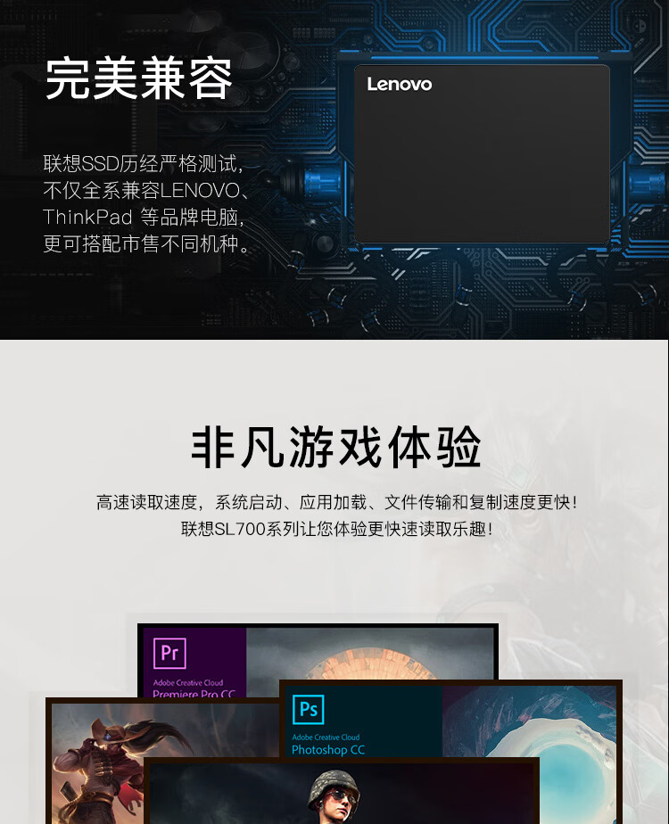 “Lenovo/聯(lián)想”1TB SSD固態(tài)硬盤 1個裝(2.5英寸SATA3.0讀540MB/s SL700閃電鯊系列臺式機/筆記本通用)