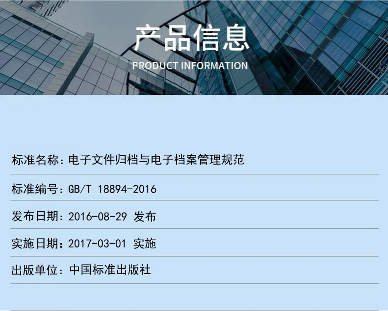 “中國標(biāo)準(zhǔn)出版社”電子文件歸檔與電子檔案管理規(guī)范 書籍 1本裝(GB/T 18894-2016)