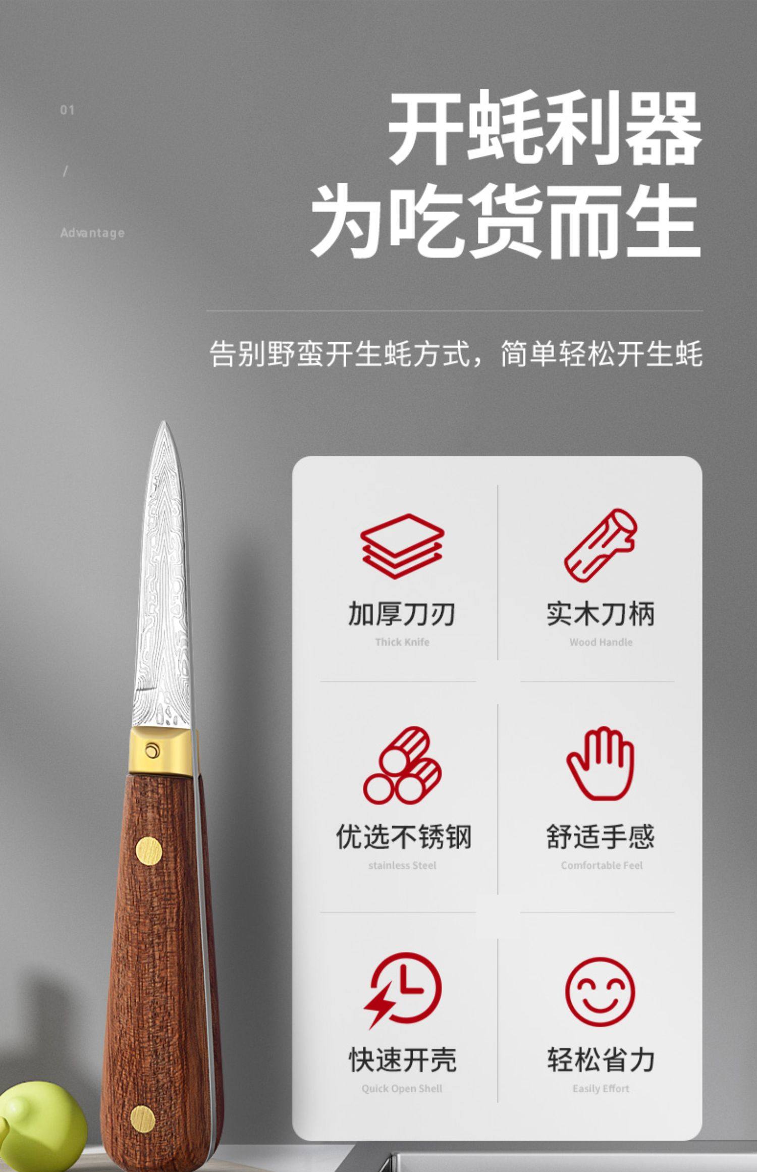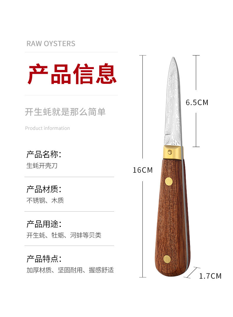 “國產(chǎn)”木柄 牡蠣刀 1把裝(加厚不銹鋼專業(yè)的工具撬生蠔神器)