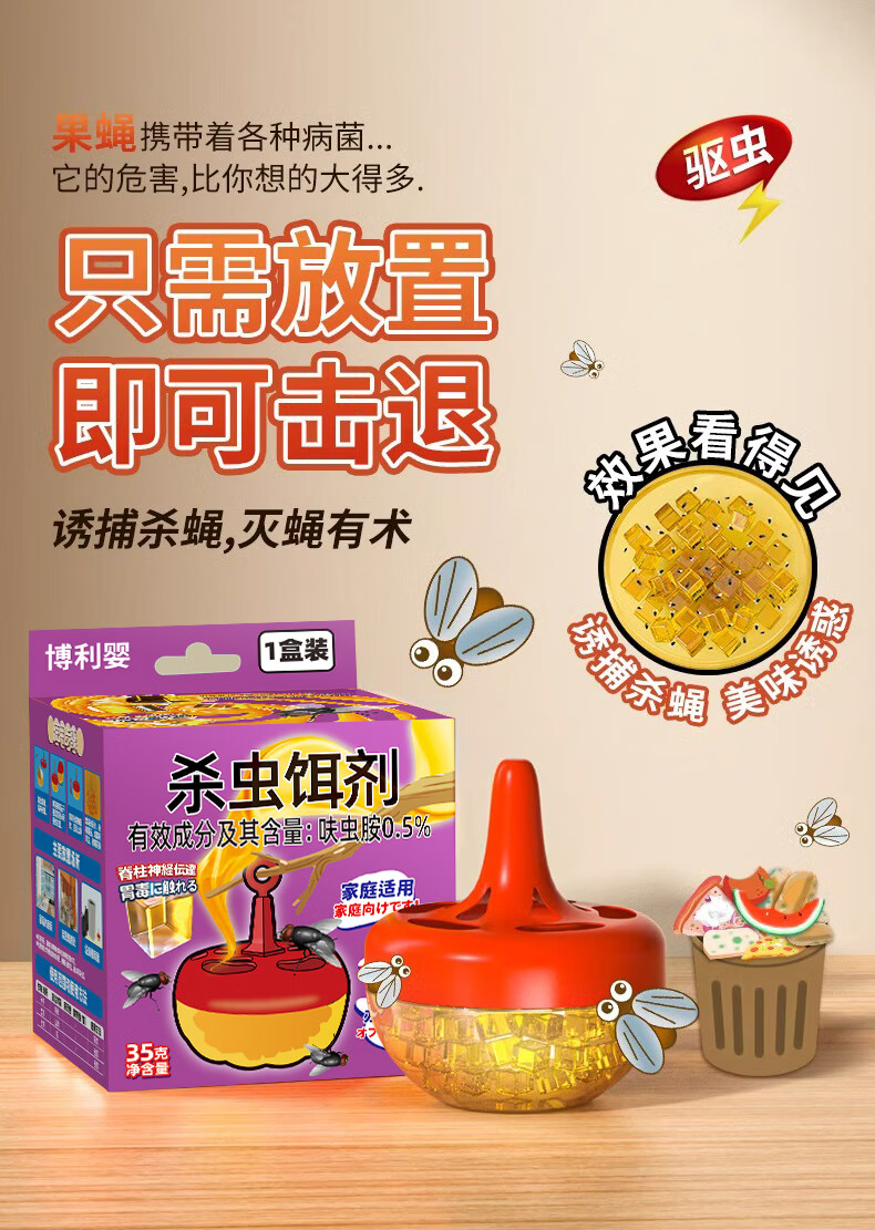 “博利嬰”35克 殺蟲餌劑 單盒裝(殺果蠅小飛蟲殺蠅誘捕器安全呋蟲胺滅蠅藥)