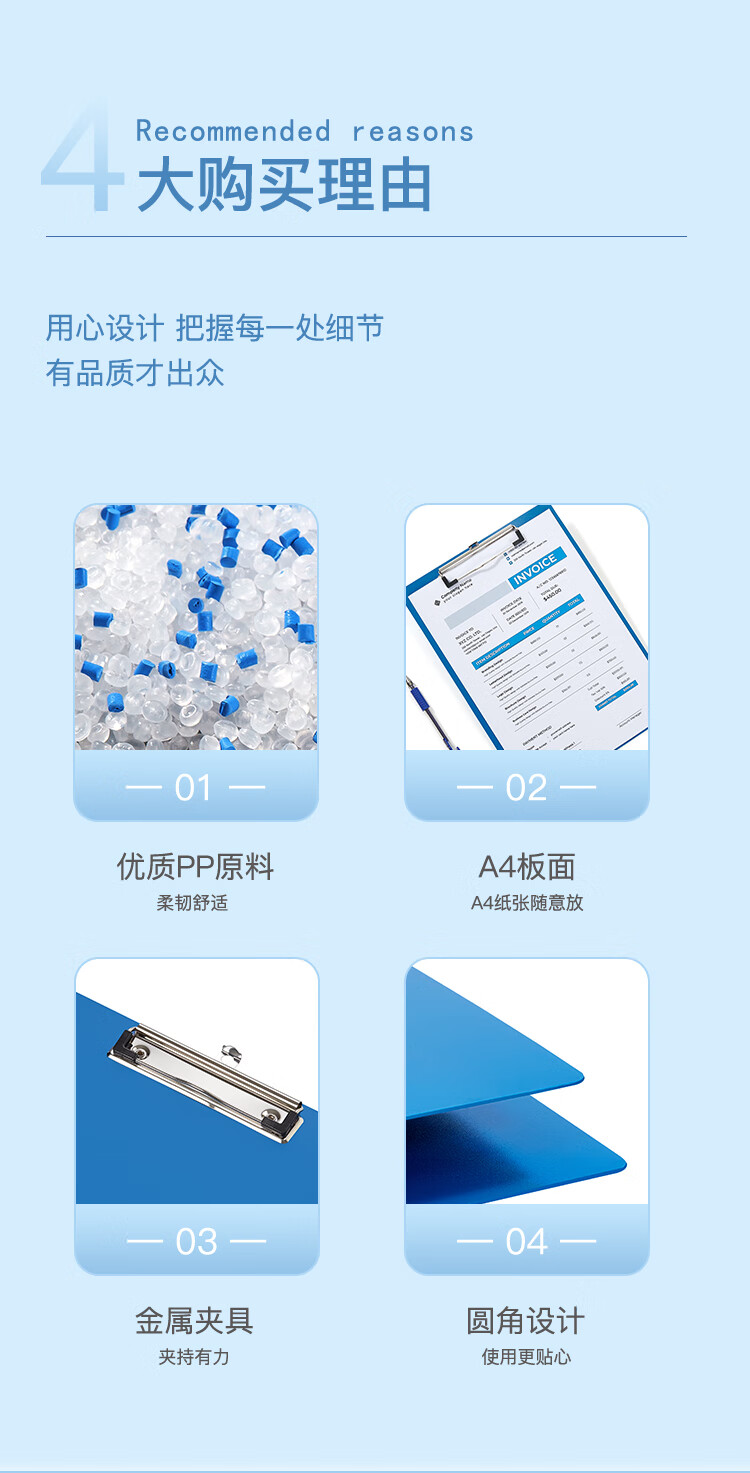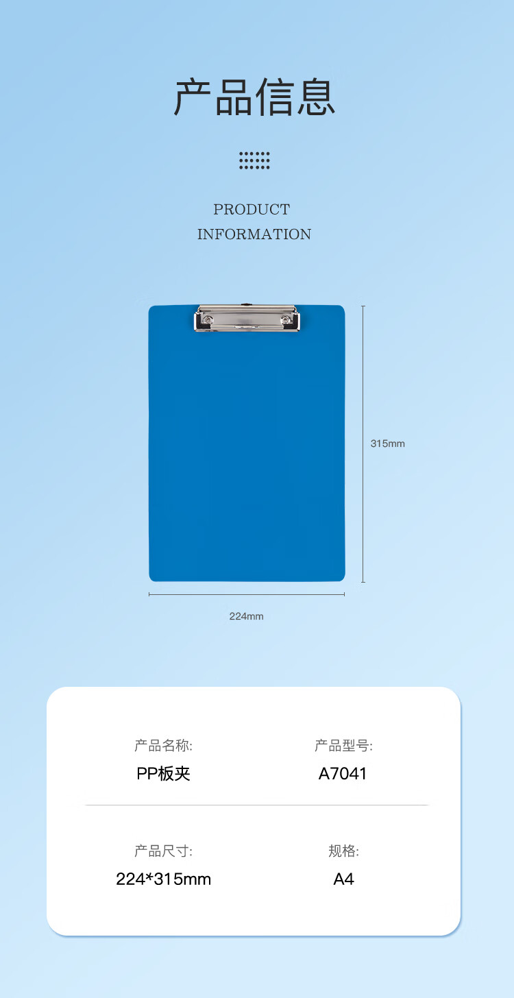 “COMIX/齊心”EA8010 PP板夾 單個(gè)裝(墊板A4文件夾菜單夾PP平板夾)