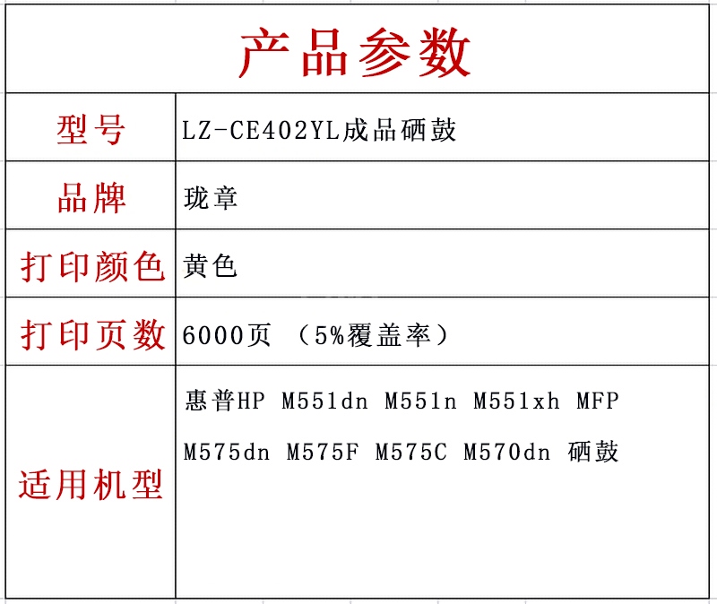 “LZ/瓏章”LZ-CE402Y 激光碳粉盒 一個裝(黃色LZ-CE402YL CE402A 507A硒鼓適用于惠普HP M551dn M551n M551xh MFP M575dn M575F M575C M570dn)