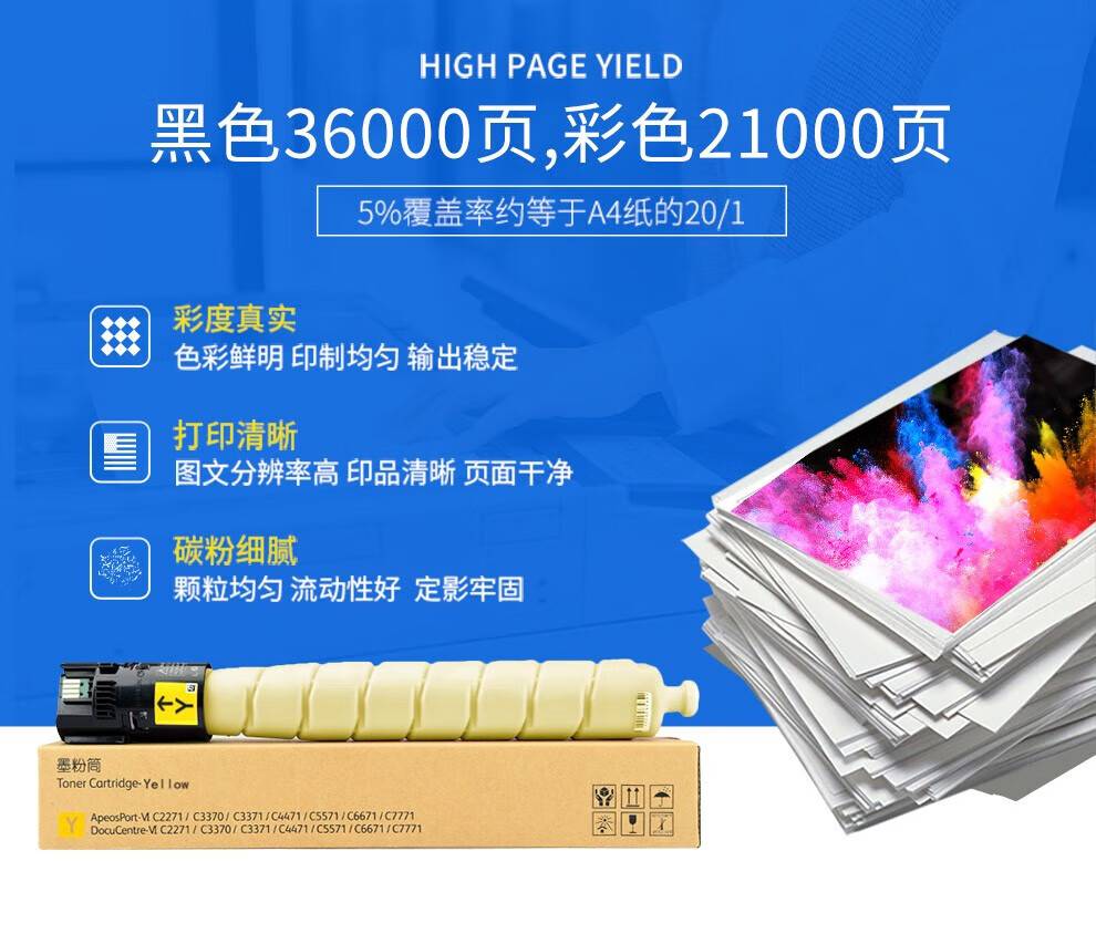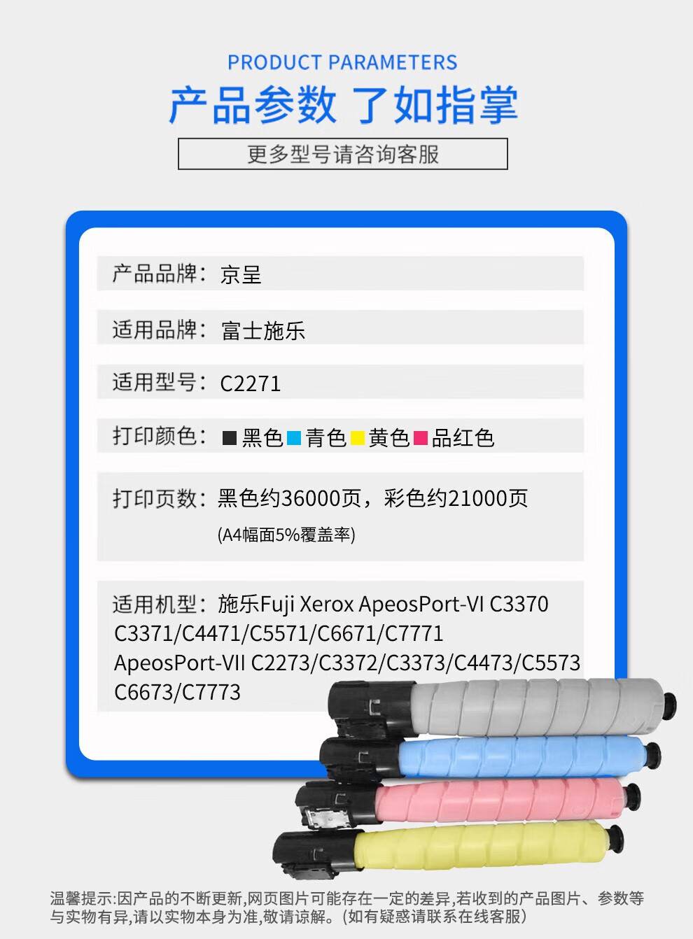 “京呈”VI C2271 粉盒 1個(gè)裝(青色六代適用施樂(lè)C3370 3371 4471 5571 6671 7771墨盒碳粉盒)