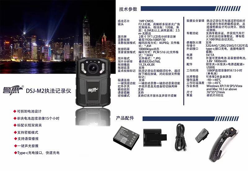 “警杰”DSJ-M2 執(zhí)法視音頻記錄儀 1臺(tái)裝(64G)