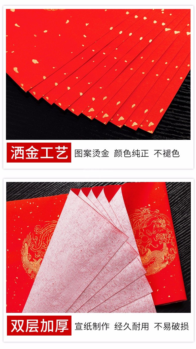 “御寶閣”龍鳳17*104cm 對聯(lián)紙 單副裝(萬年紅七言對聯(lián)專用紙空白春聯(lián)紙灑金不褪色燙金5副/包)