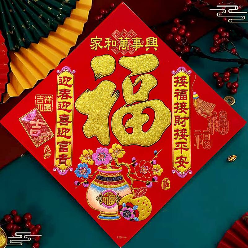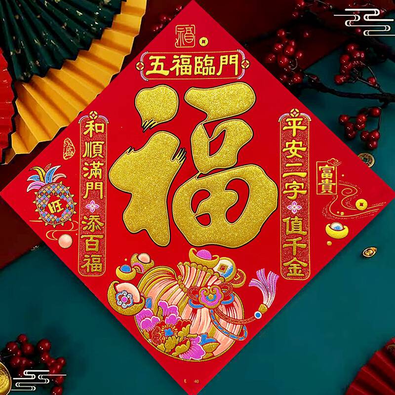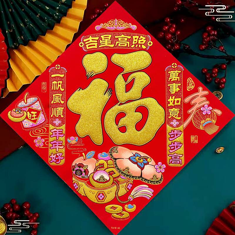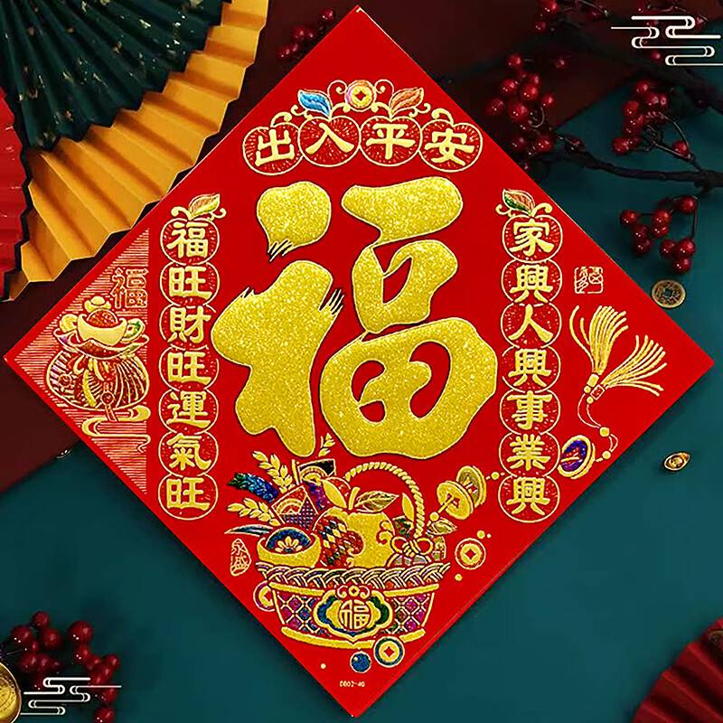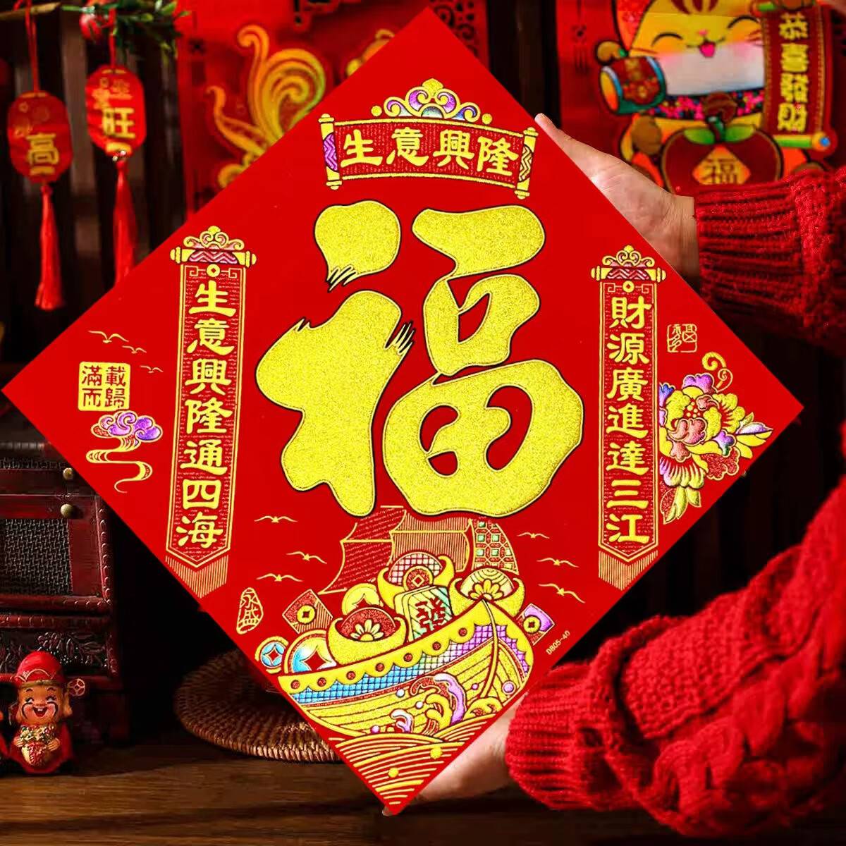 “國產”35*35cm 福字 單個裝(寶生意興隆40#絨布帶背膠金字福字門貼春節(jié)大門裝飾立體燙金寶字貼喬遷新年春節(jié)窗花)