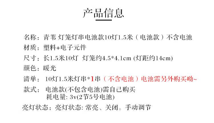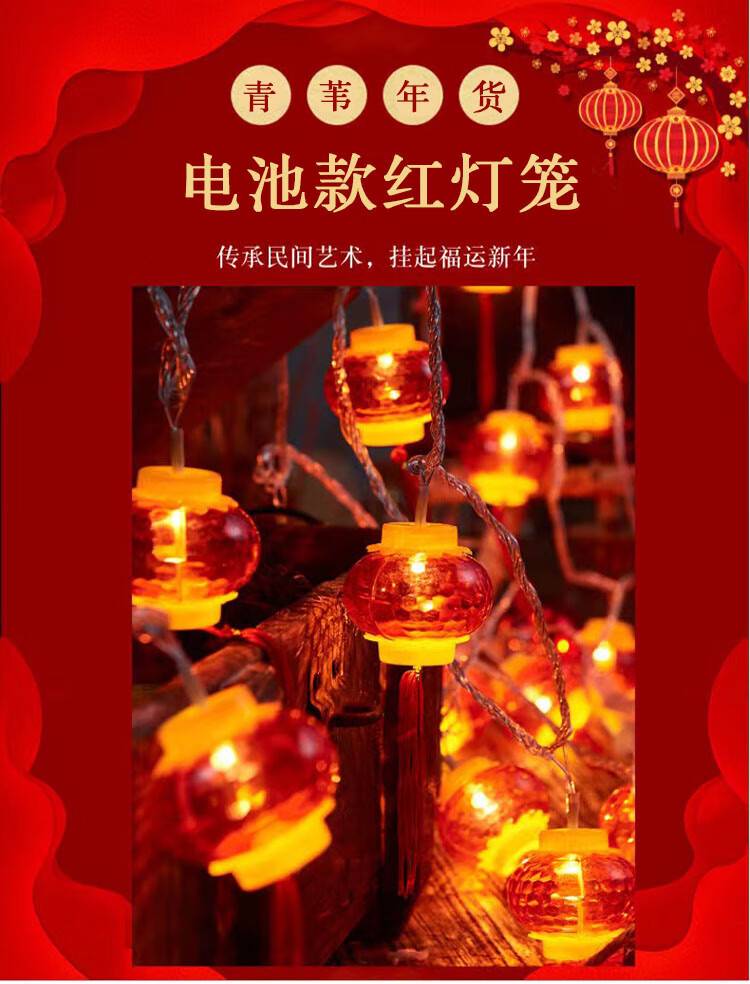 “QW/青葦”電池款 紅燈籠串燈 單個(gè)裝(無(wú)電池新年裝飾紅燈籠1.5米10燈元旦春節(jié)布置)