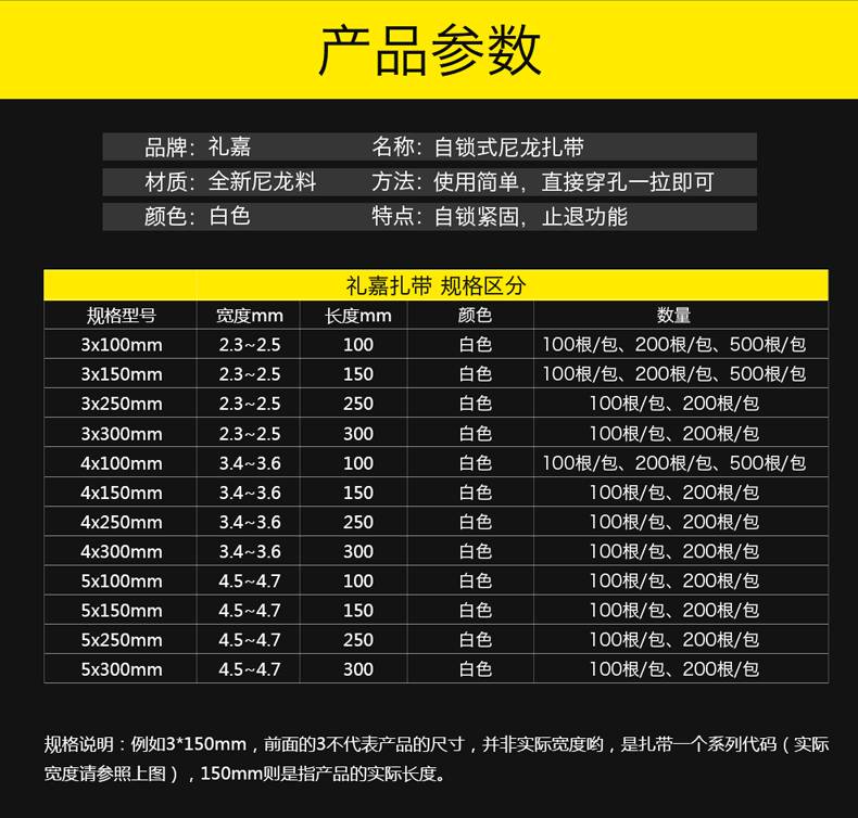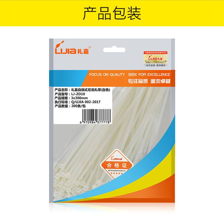 “LIJIA/禮嘉”LJ-ZD09 尼龍?jiān)鷰?1包裝(白色100條/包3x300mm自鎖式尼龍?jiān)鷰该骼砭€帶全新環(huán)保多功能絲捆/綁/理/束線帶)