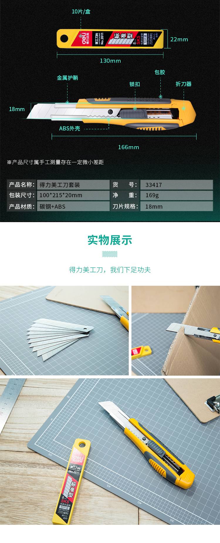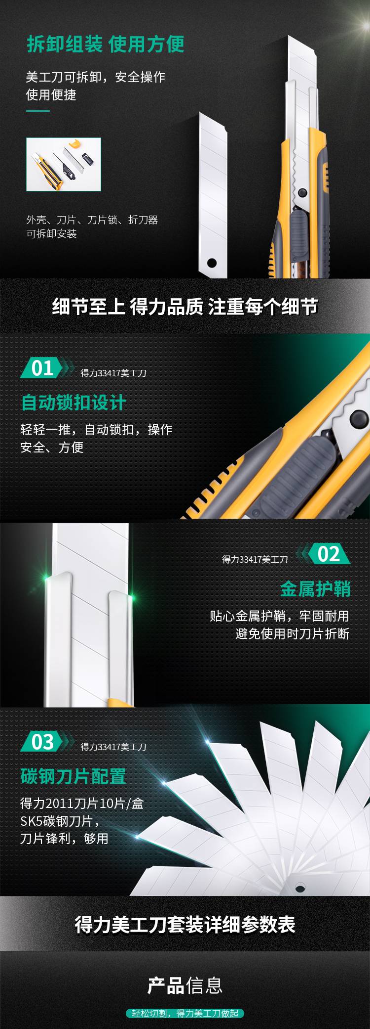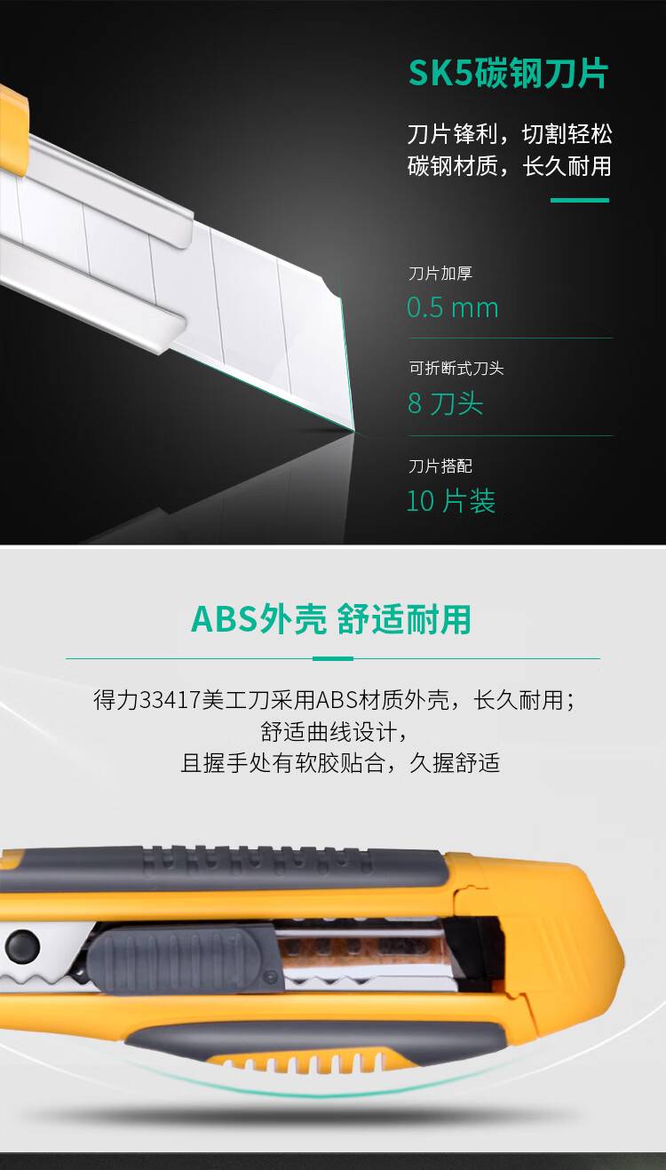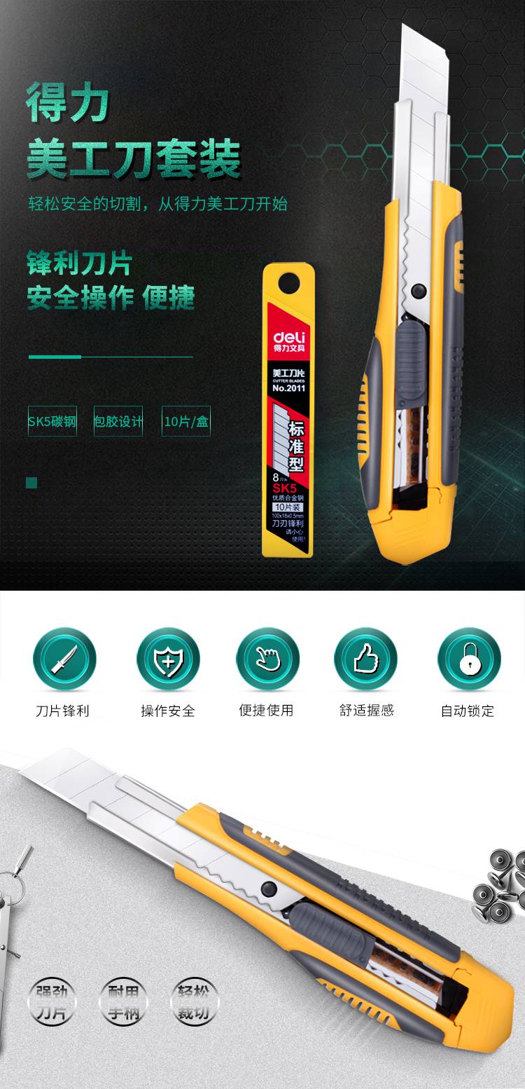 “deli/得力”33417 美工刀套裝 單套裝(大號耐用自動鎖定功能裁紙刀小刀套裝)
