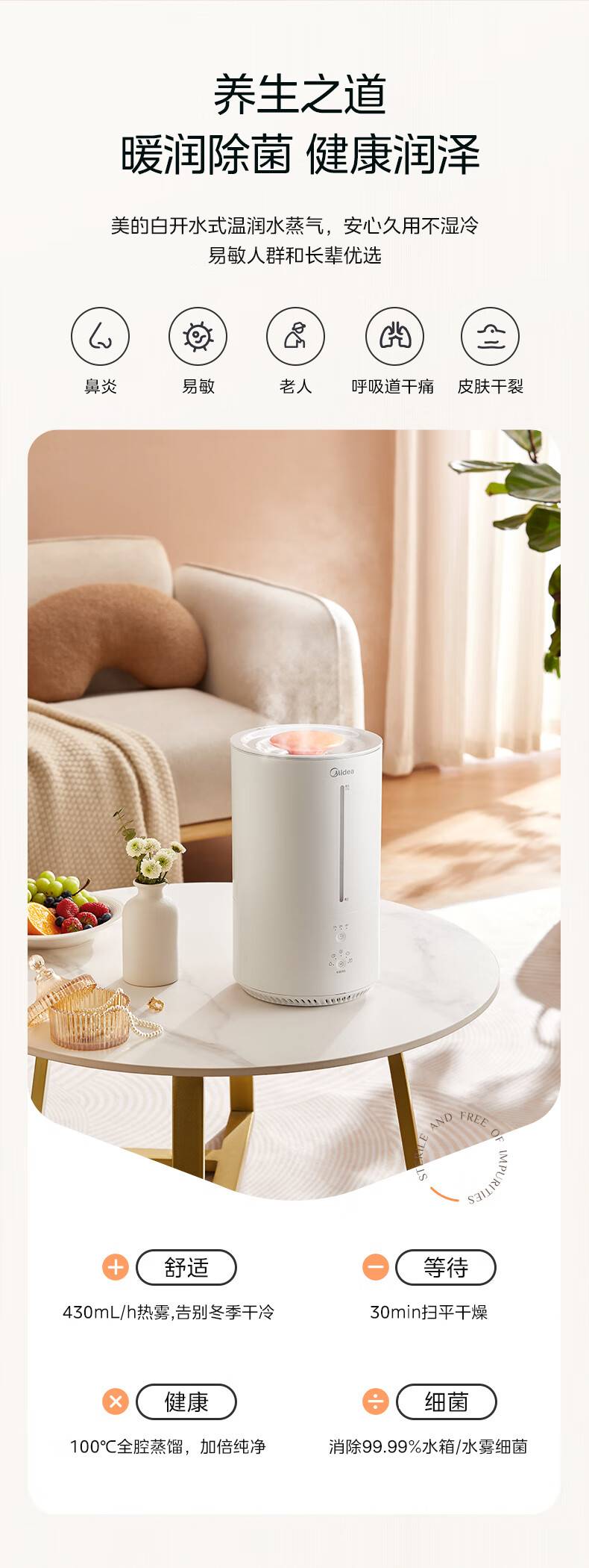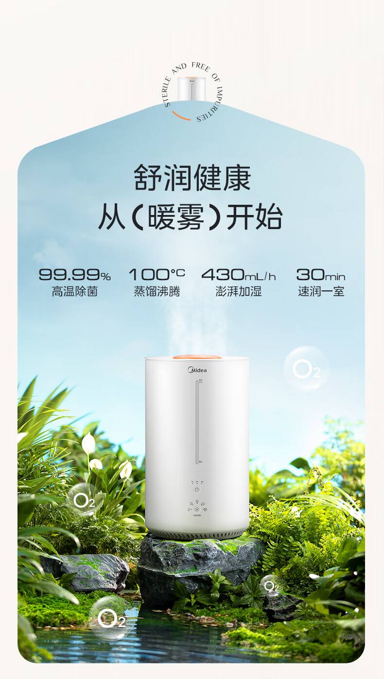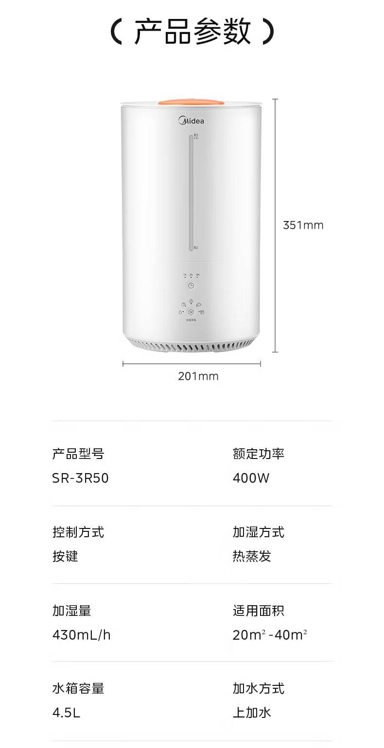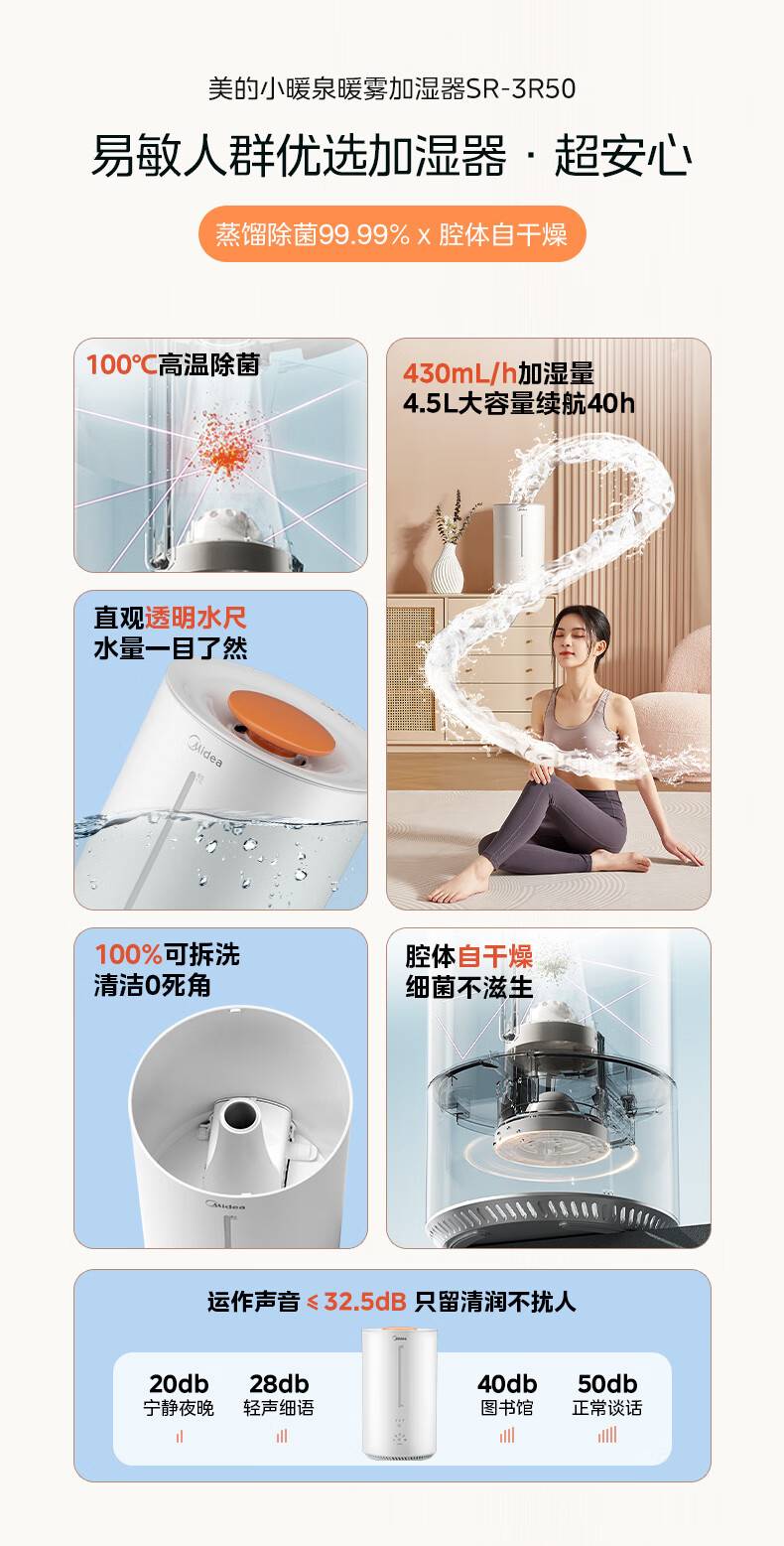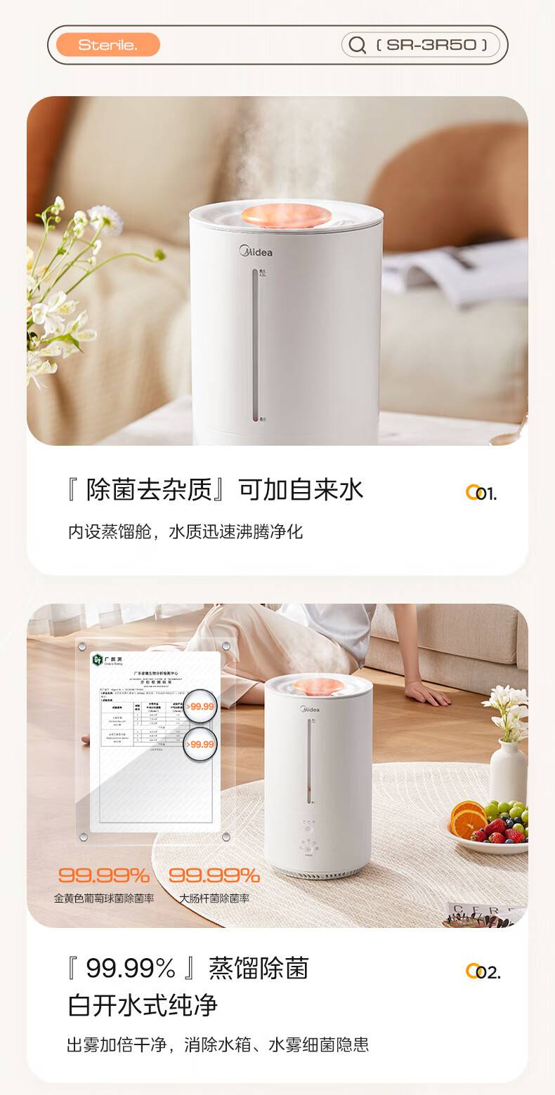 “Midea/美的”SR-3R50 除濕機(jī) 1臺裝(熱蒸發(fā)空氣加濕器蒸餾高溫除菌家用臥室客廳鼻炎孕婦母嬰幼兒小型桌面加濕空調(diào)取暖)