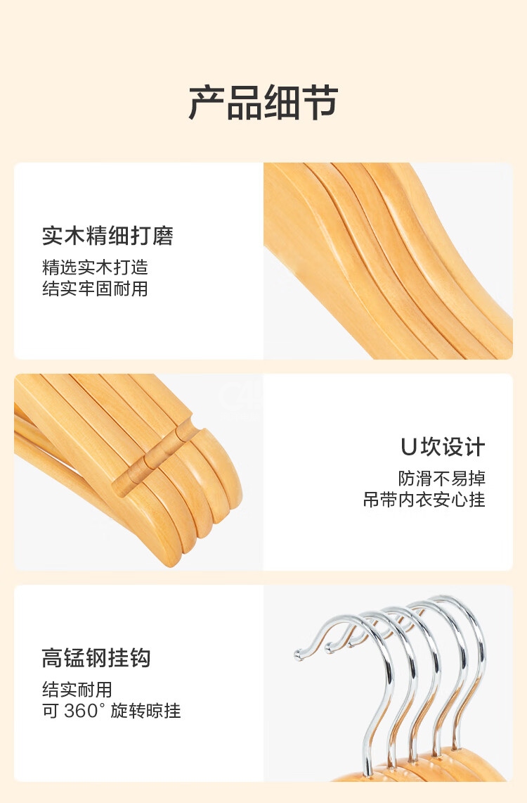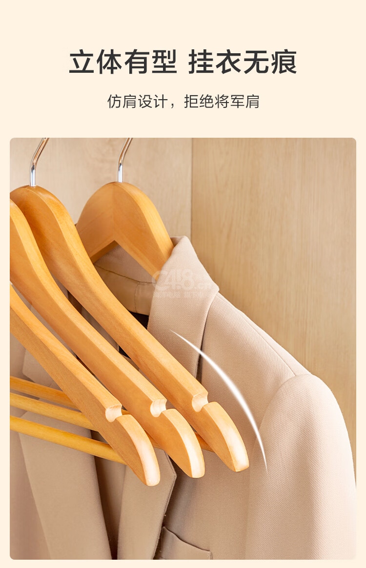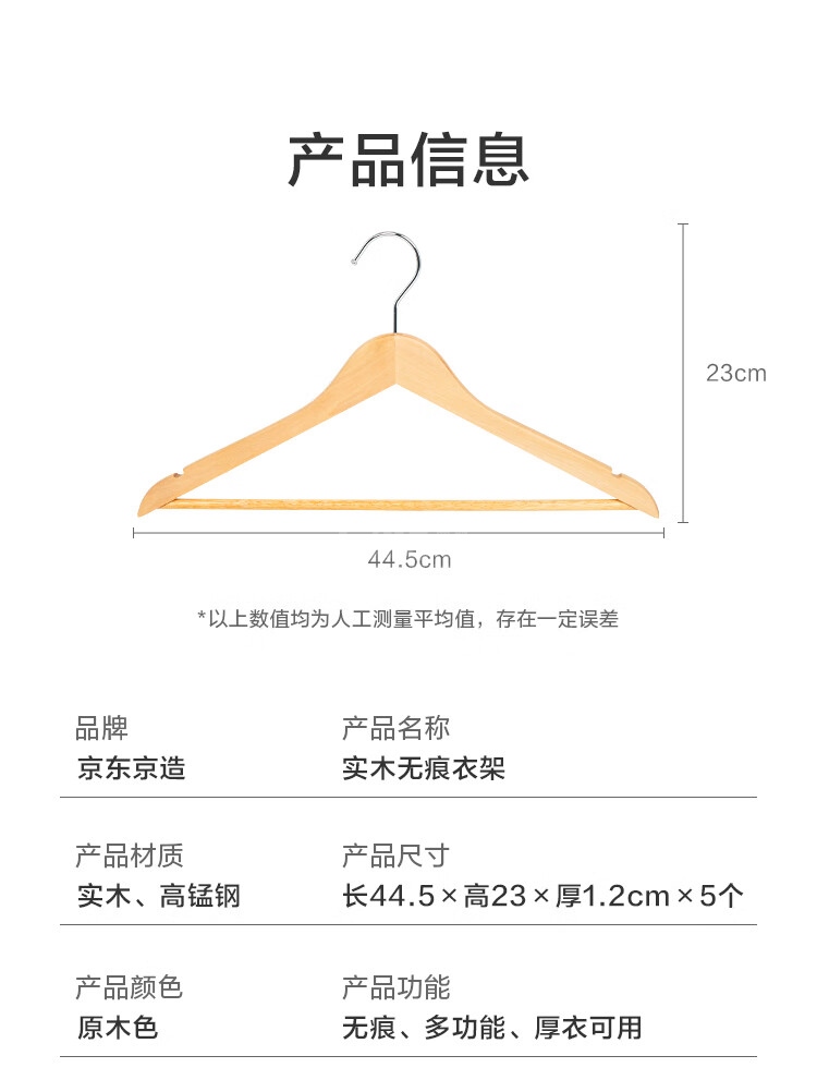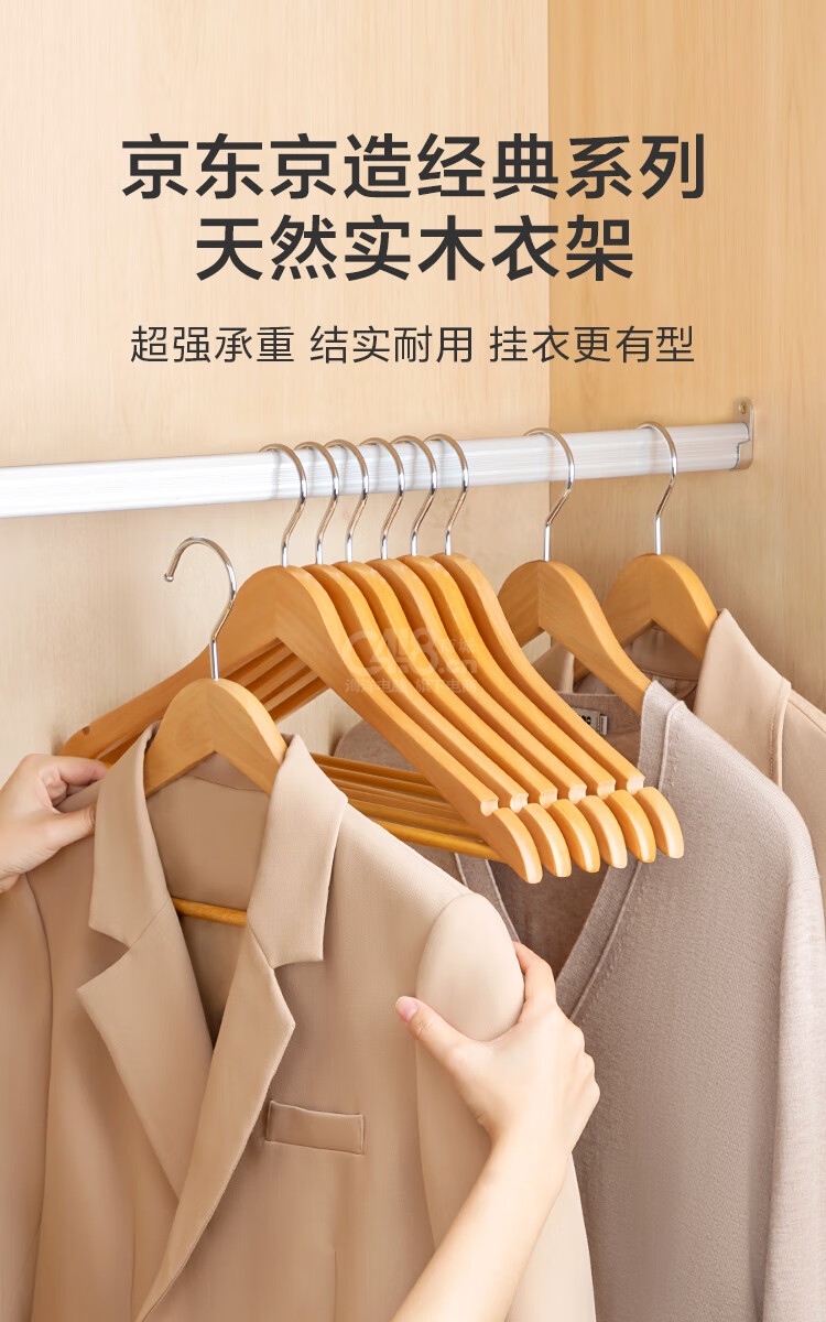 “京東京造”長44.5*高23*厚1.2cm 實木無痕衣架 1個裝(原木色木質(zhì)衣服架木頭衣服掛木制大衣西裝衣?lián)?